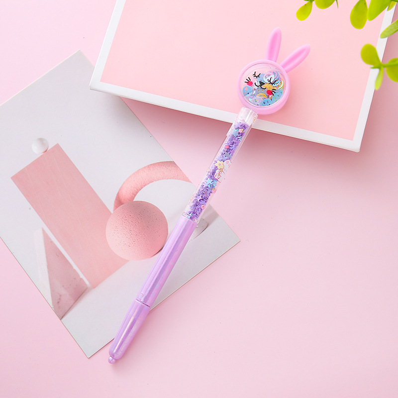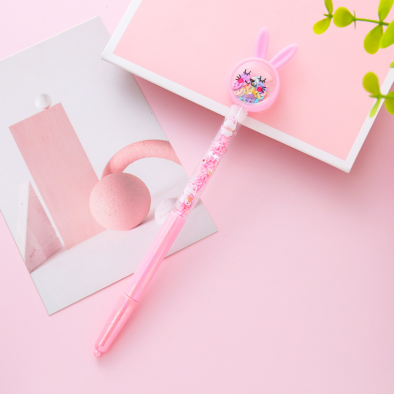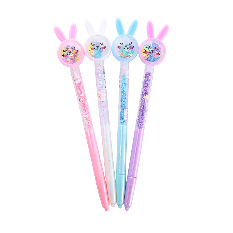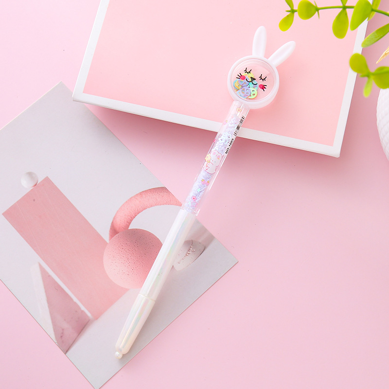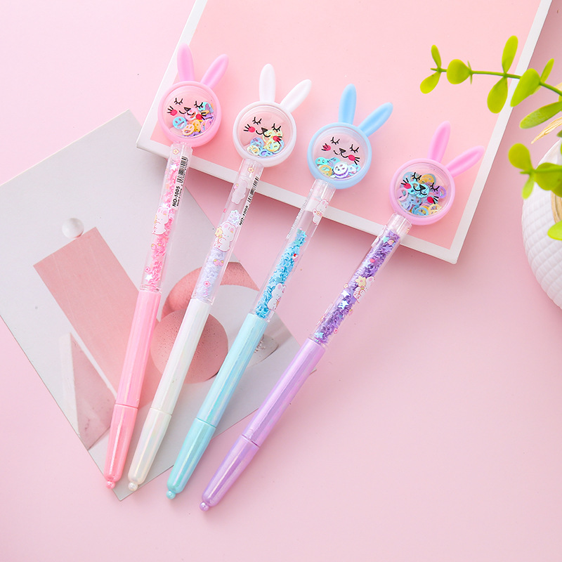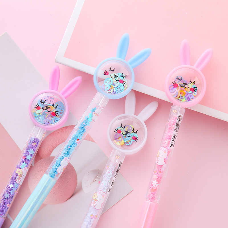 Bút Gel cát lún đính sequin thỏ, dụng cụ viết học sinh hoạt hình, bút nước, bút ký văn phòng giá trị cao, Bán Buôn