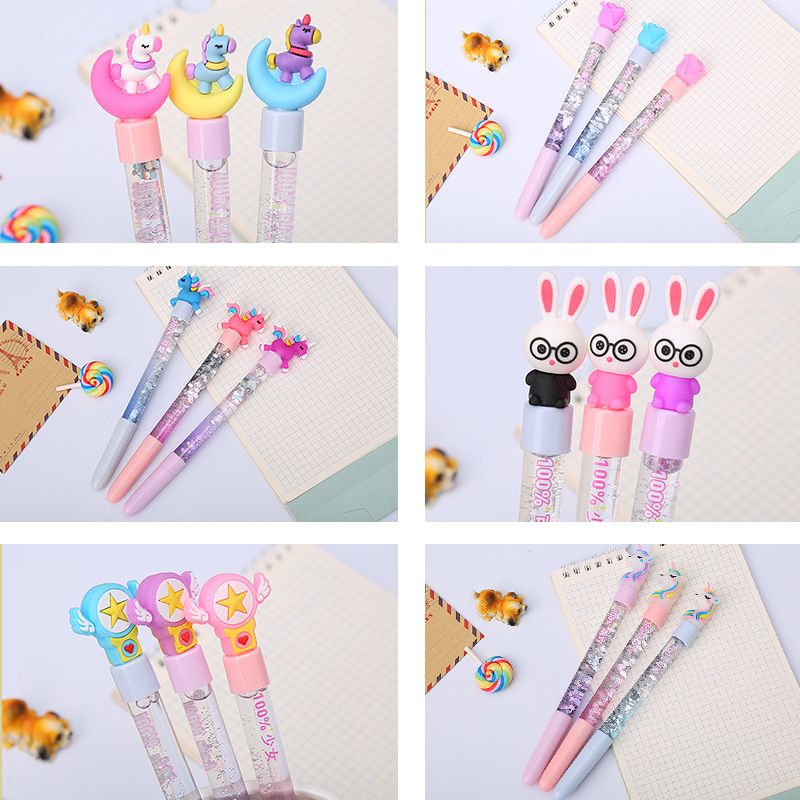 Bút Gel học sinh hoạt hình bút gel sáng tạo đầu mềm Tiên Cát chảy bút văn phòng học tập dễ thương bút nước Sequins dầu