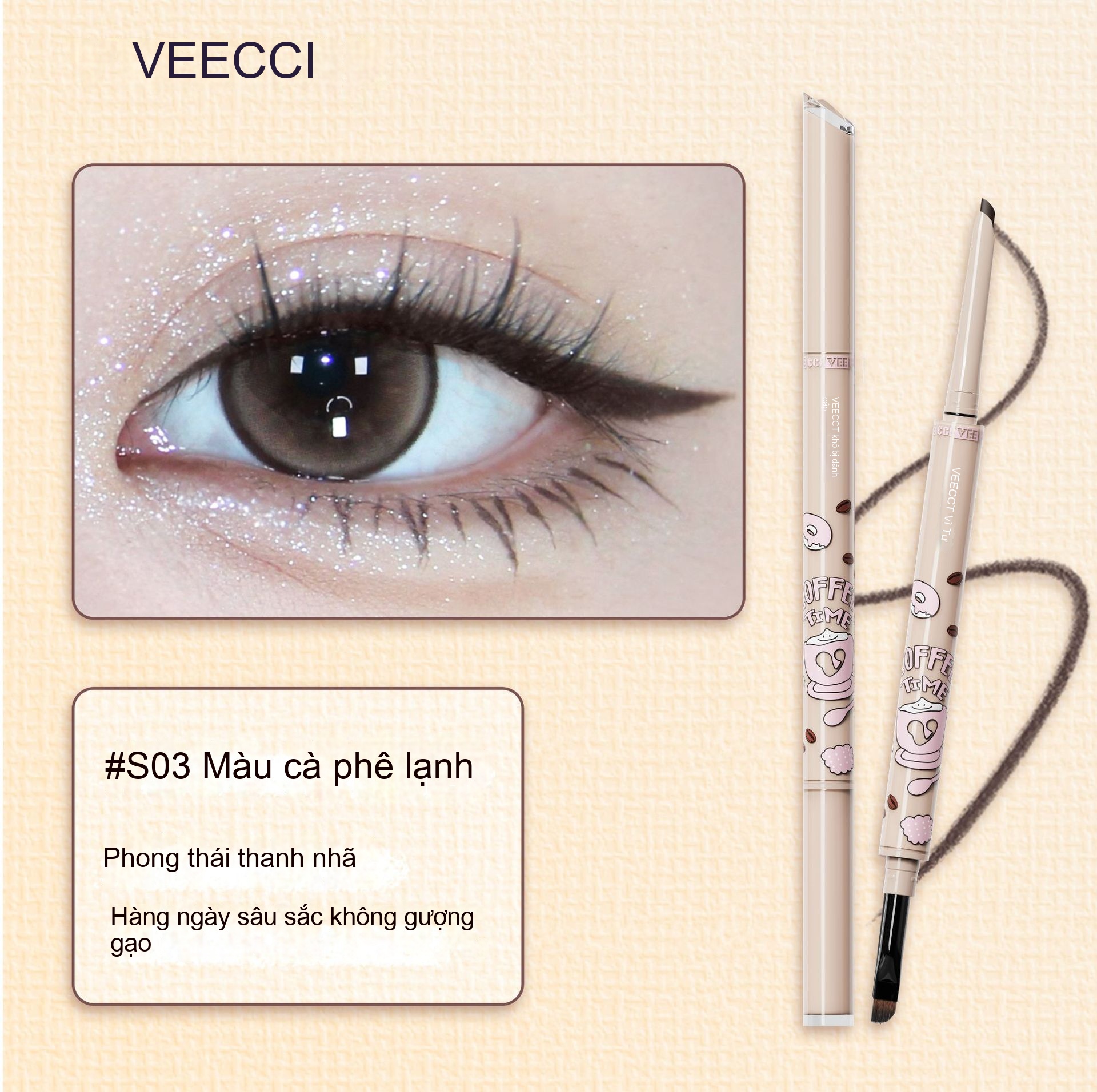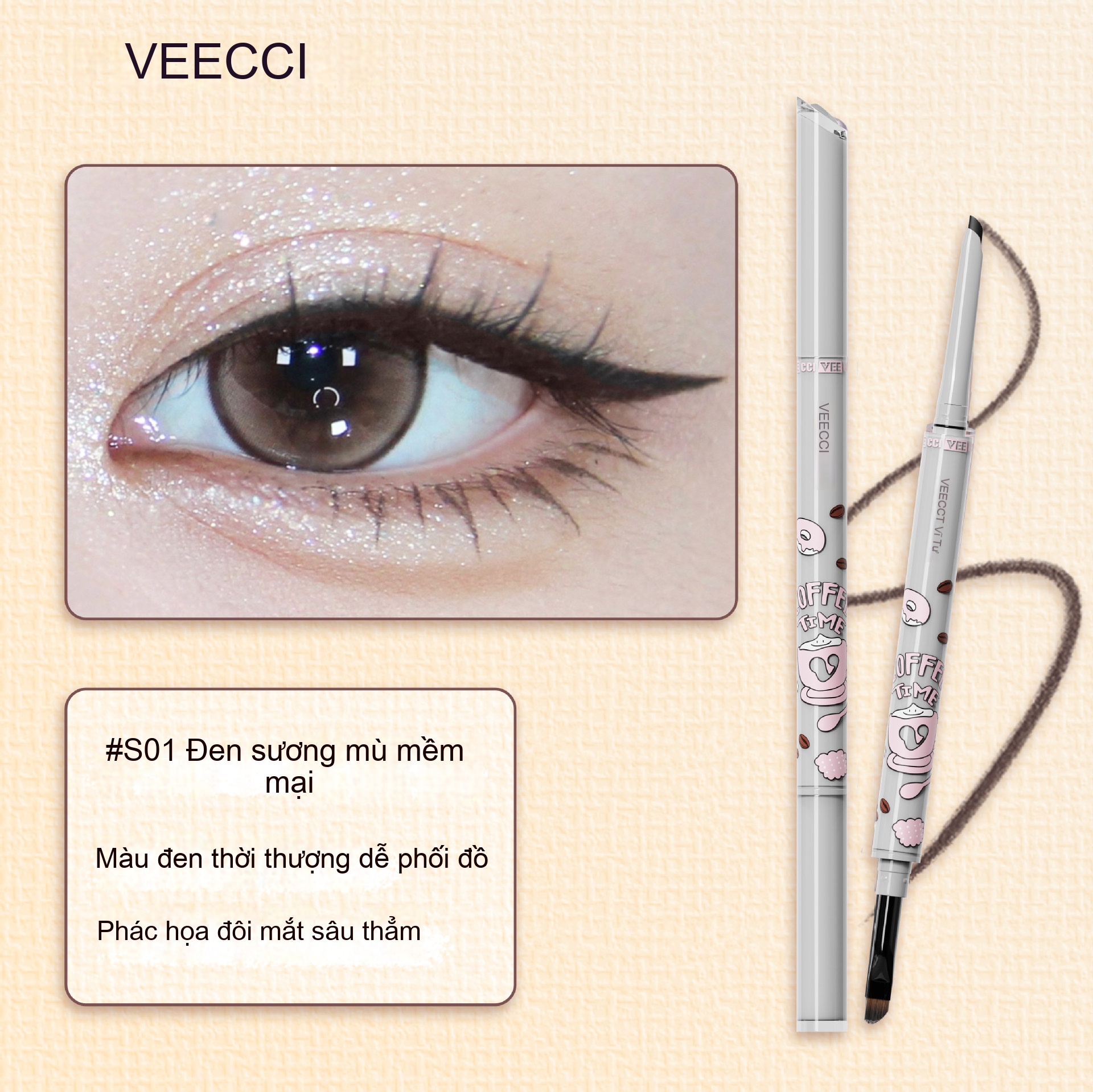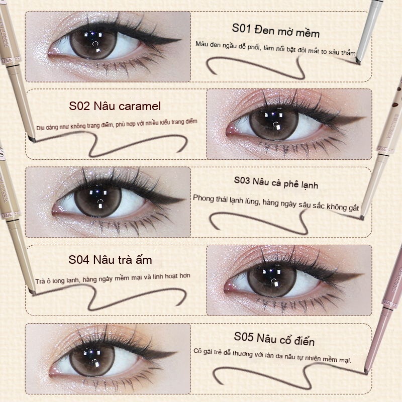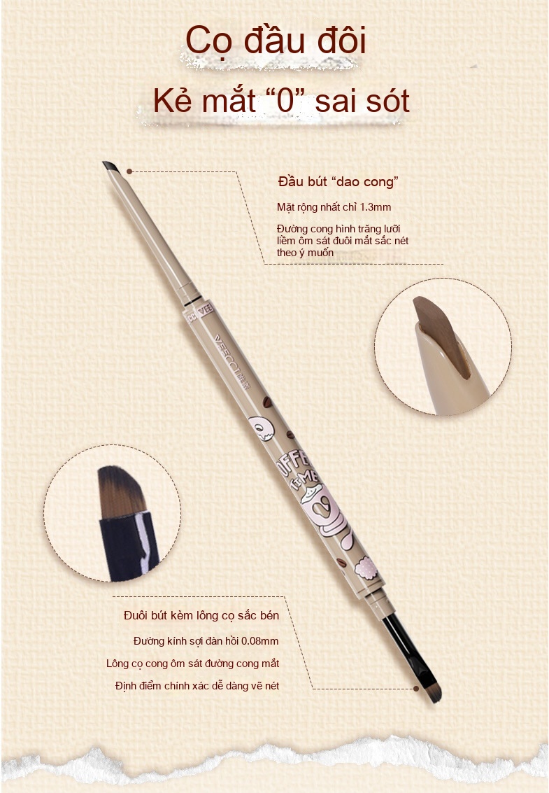Bút kẻ mắt hai đầu dòng VEECCI/Weizi Coffee, bút kẻ mắt học sinh lâu bền không dễ lem