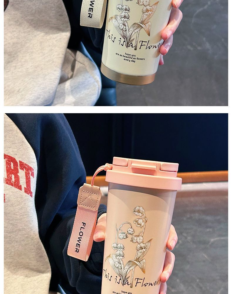 Cốc Cà Phê Bảo quản lạnh kiểu mới 2024 Thiết kế cốc giữ nhiệt gốm sứ Cốc giữ nhiệt cốc nước ống hút dung tích lớn giá trị cao cho nữ