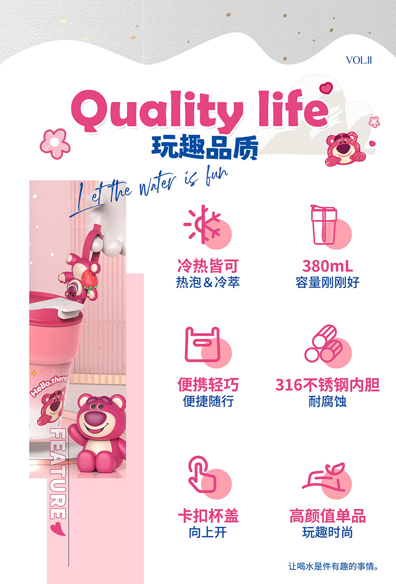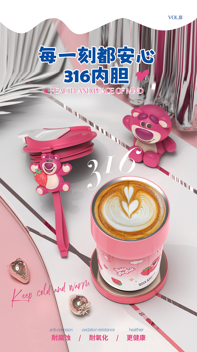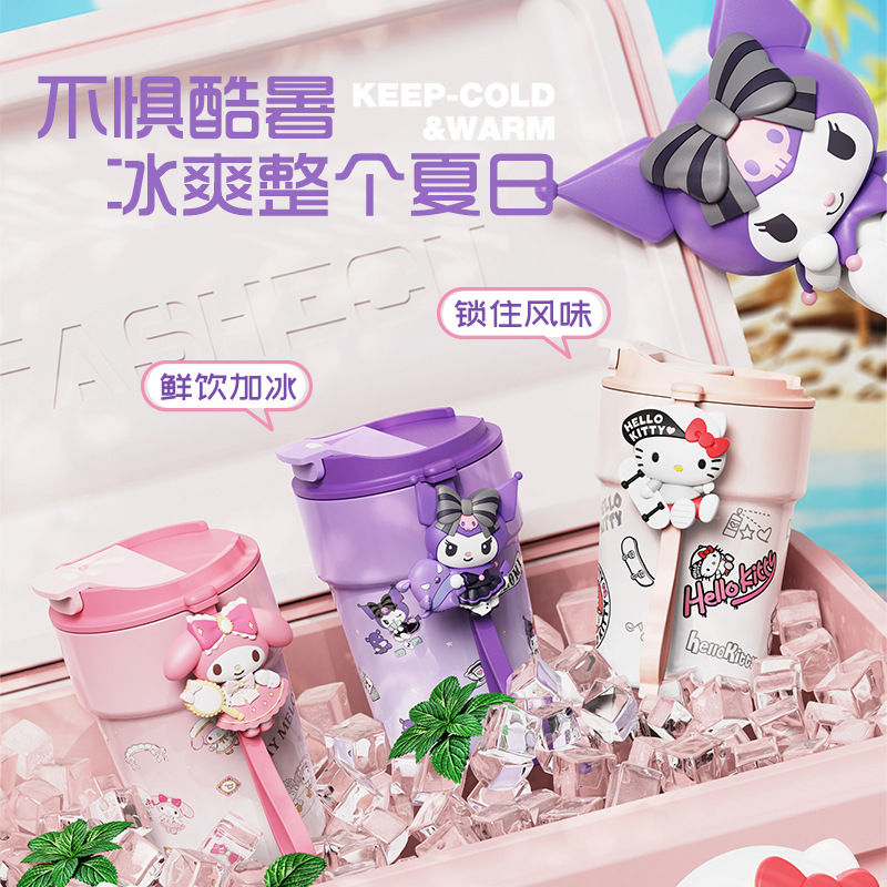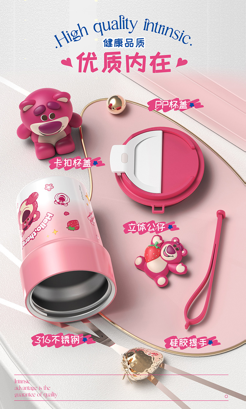 Cốc giữ nhiệt cà phê Gấu dâu Sanrio cốc nước 2023 kiểu mới hoạt hình dễ thương cho bé gái cốc đi kèm bằng thép không gỉ