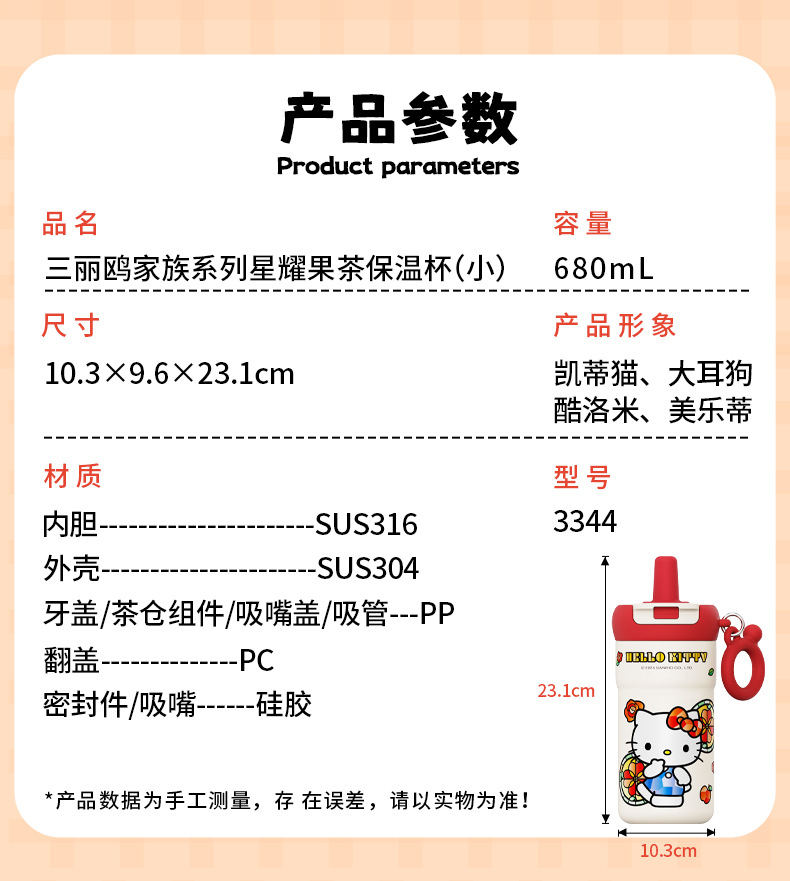 Mã số: 3344 Sanrio Family Series Xingyao Fruit Tea Bình chân không (Nhỏ)