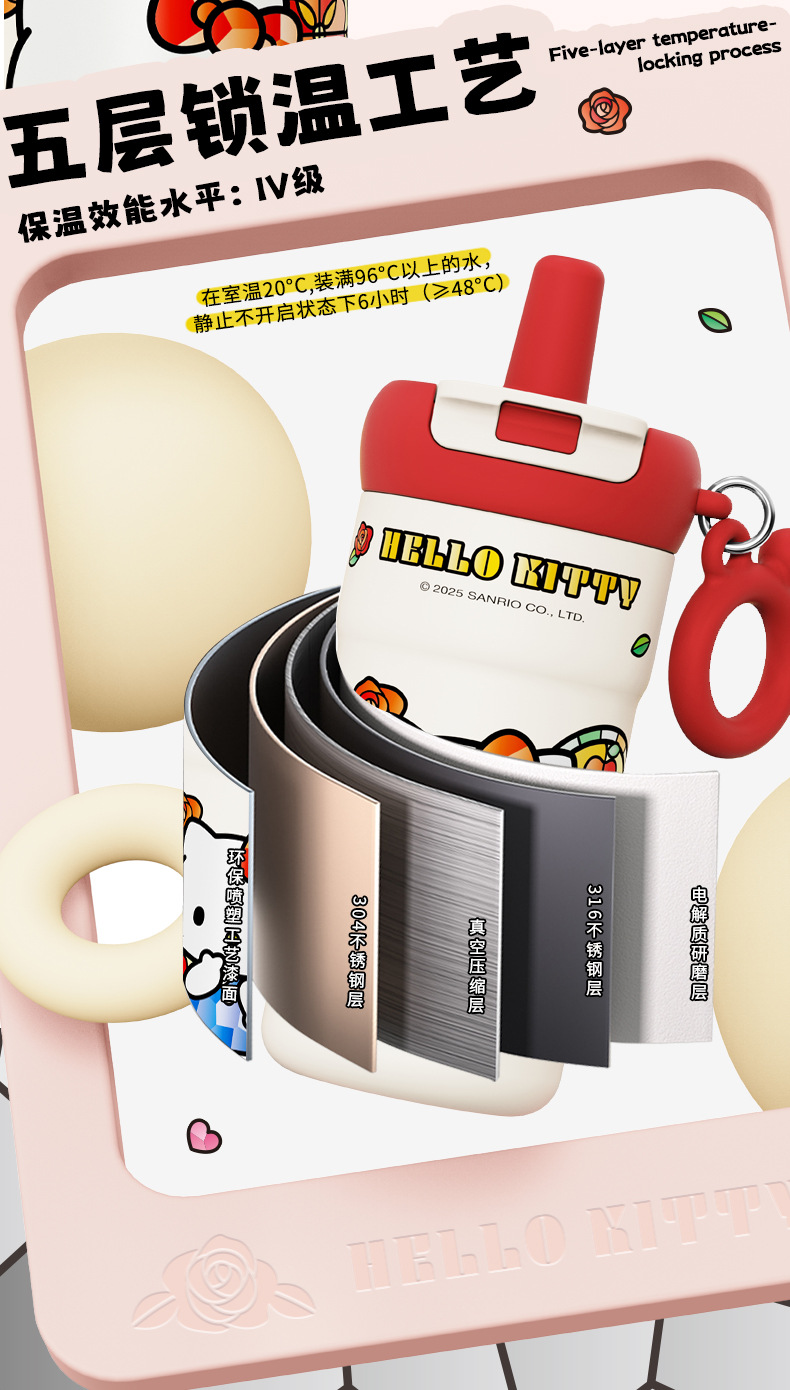 Cốc giữ nhiệt cho trẻ em Sanrio cốc nước học sinh tiểu học cho bé gái đi học cốc 2025 kiểu mới cốc hút lạnh