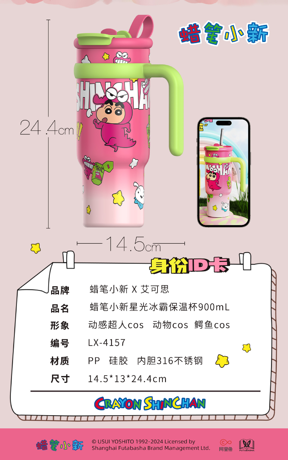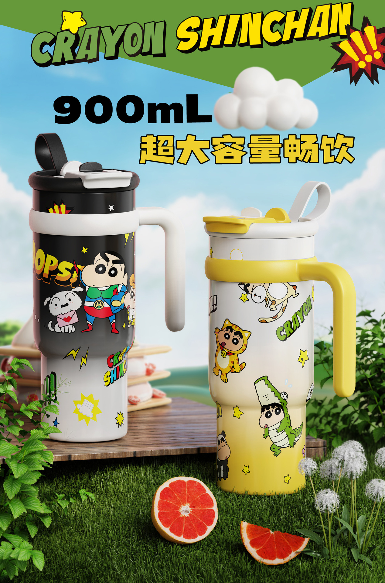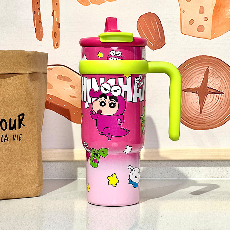 Cốc giữ nhiệt Crayon Shin-Chan cốc nước ống hút dung tích lớn Cốc có tay cầm cốc đi kèm cốc cốc băng giá trị cao