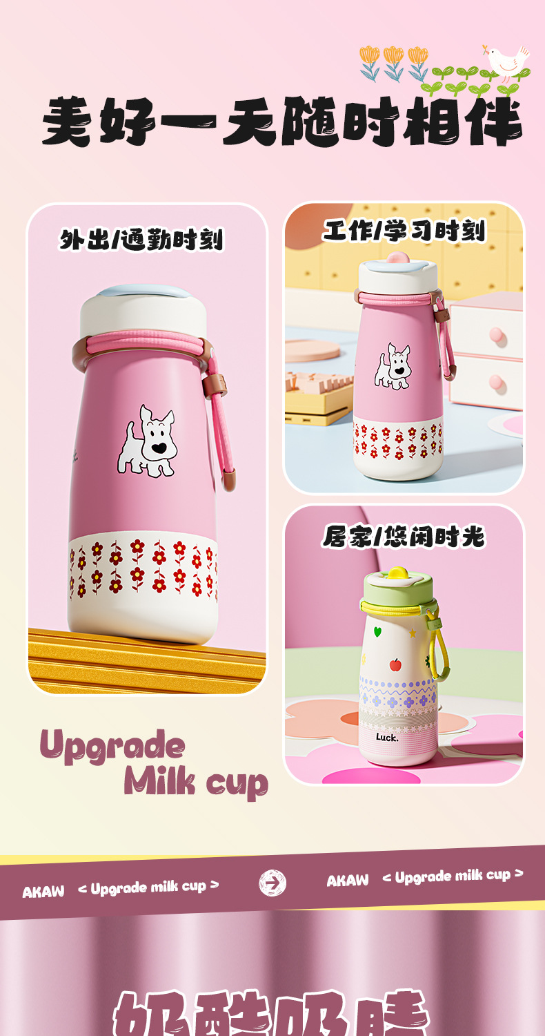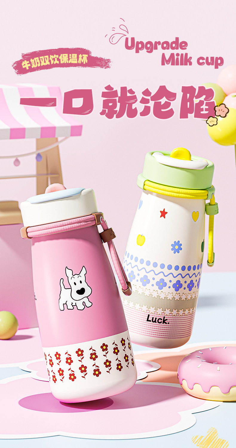 Cốc giữ nhiệt Crayon Shin-chan Cốc uống nước ống hút dễ thương cho bé gái Cốc uống nước đôi giá trị cao cho trẻ em mẫu mới cốc học sinh