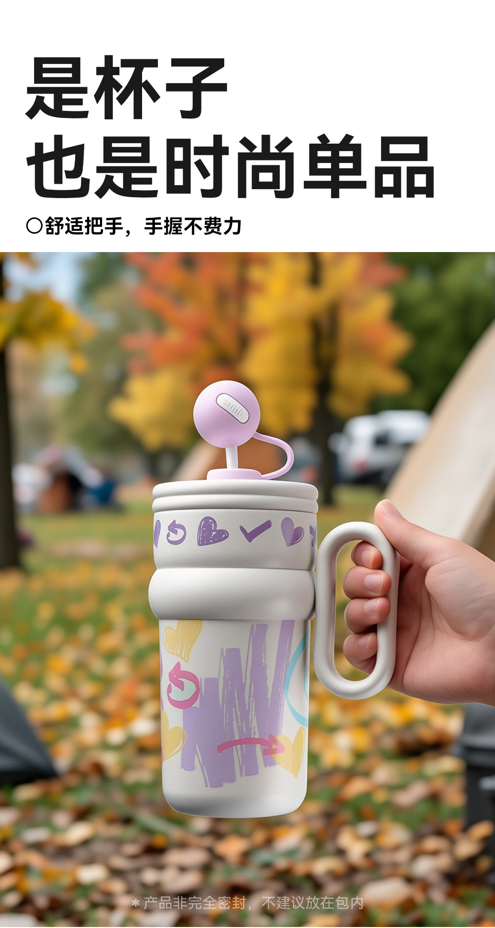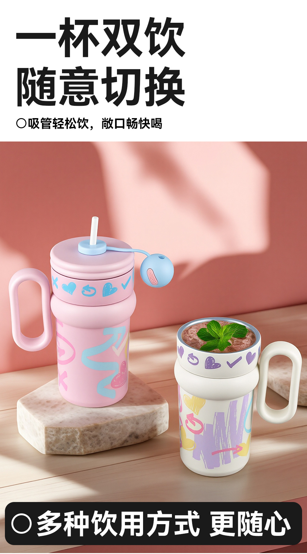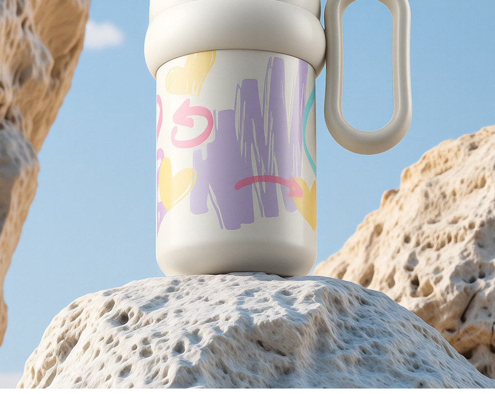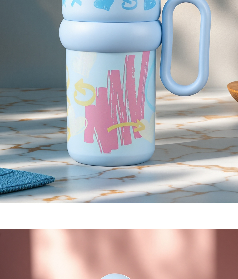 Cốc giữ nhiệt graffiti cốc cà phê dung tích lớn cho nữ Cốc có tay cầm có giá trị cao mẫu mới 2024 cốc nước ống hút học sinh
