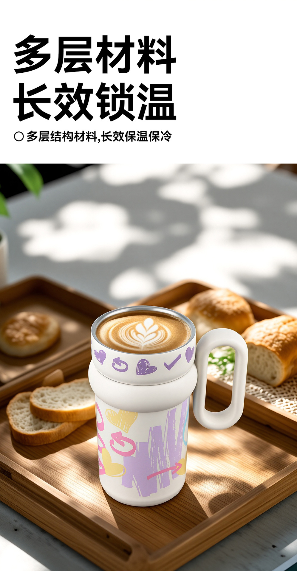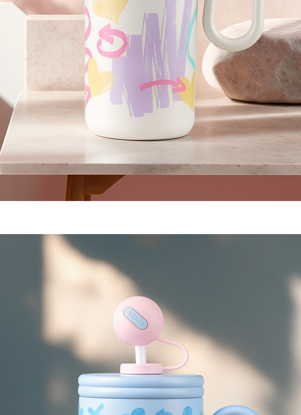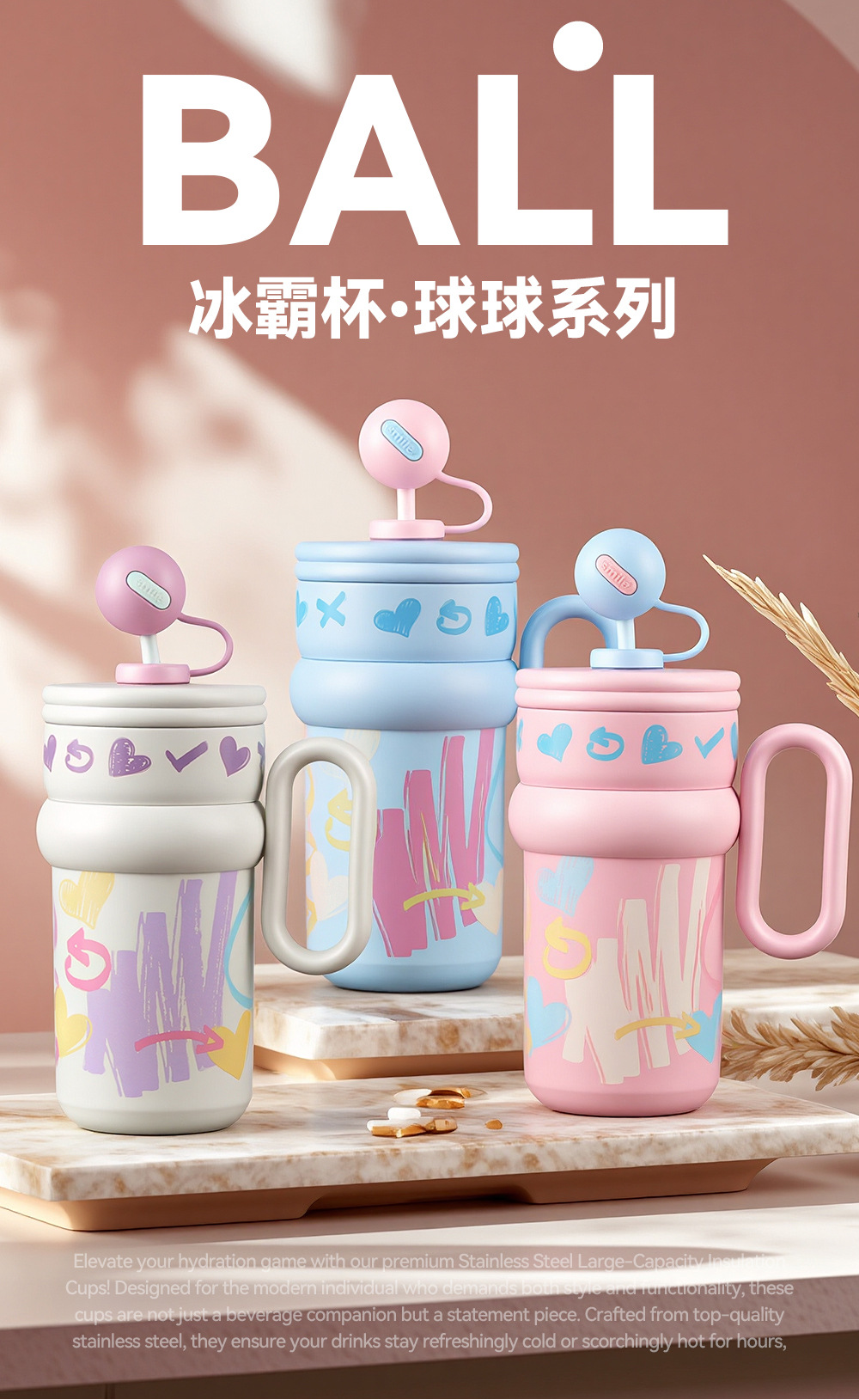 Cốc giữ nhiệt graffiti cốc cà phê dung tích lớn cho nữ Cốc có tay cầm có giá trị cao mẫu mới 2024 cốc nước ống hút học sinh