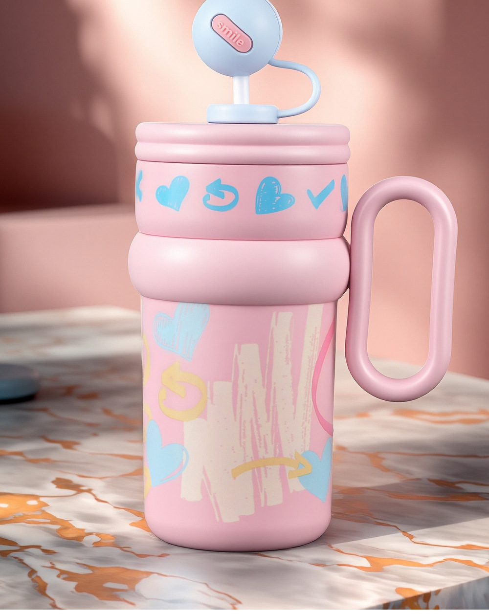 Cốc ống hút hạnh phúc màu hồng