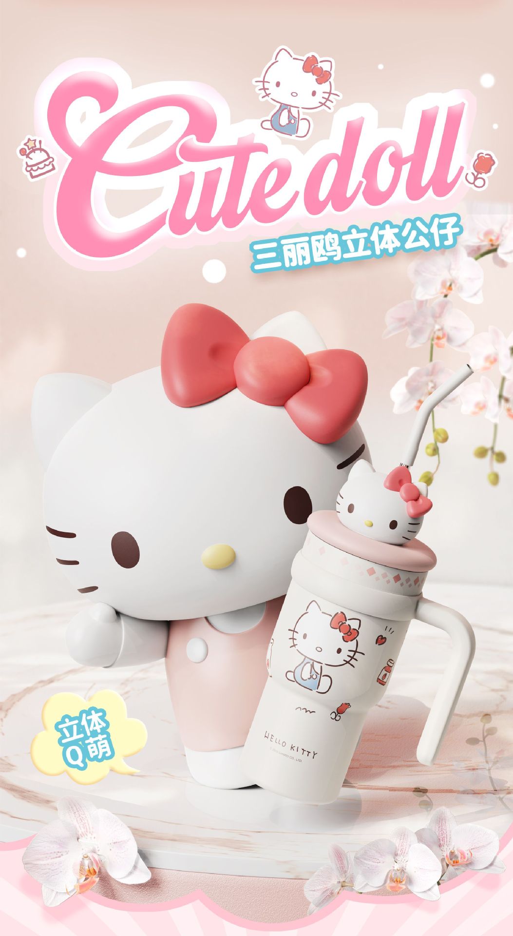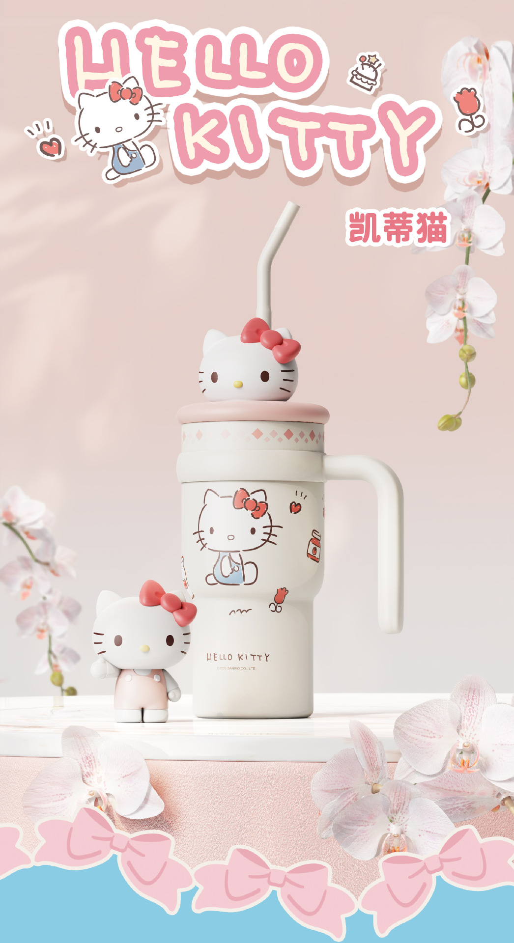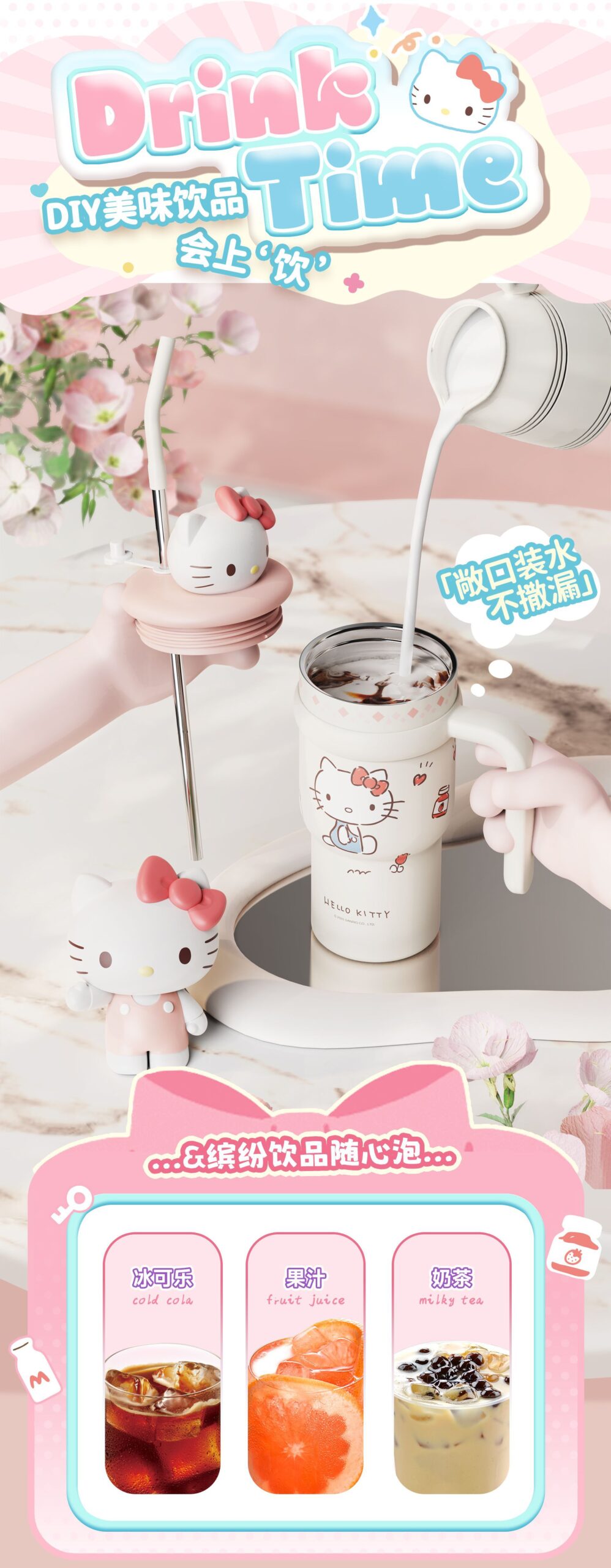 Cốc giữ nhiệt hellokitty Sanrio cốc nước khổng lồ ống hút dung tích lớn cốc nước nữ sinh giá trị cao