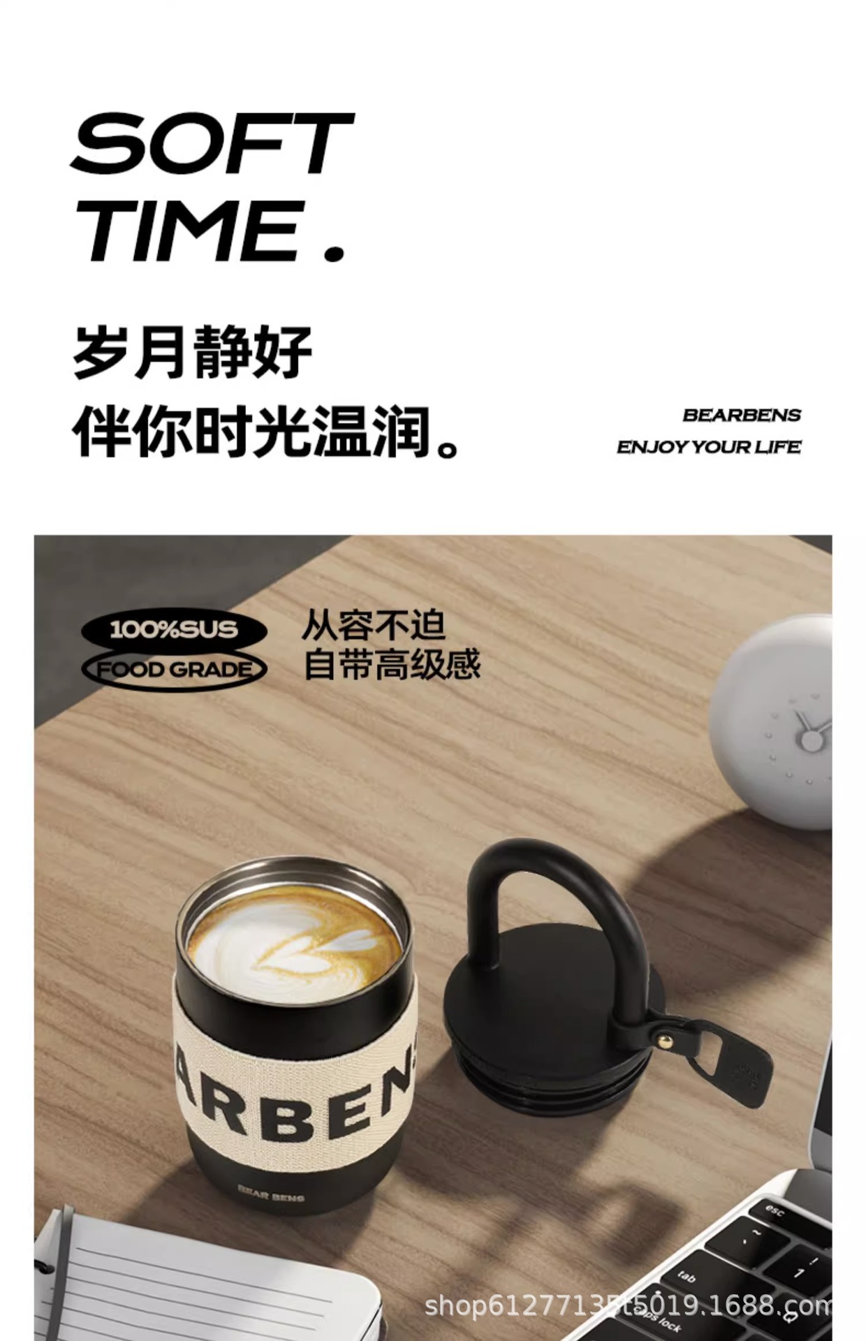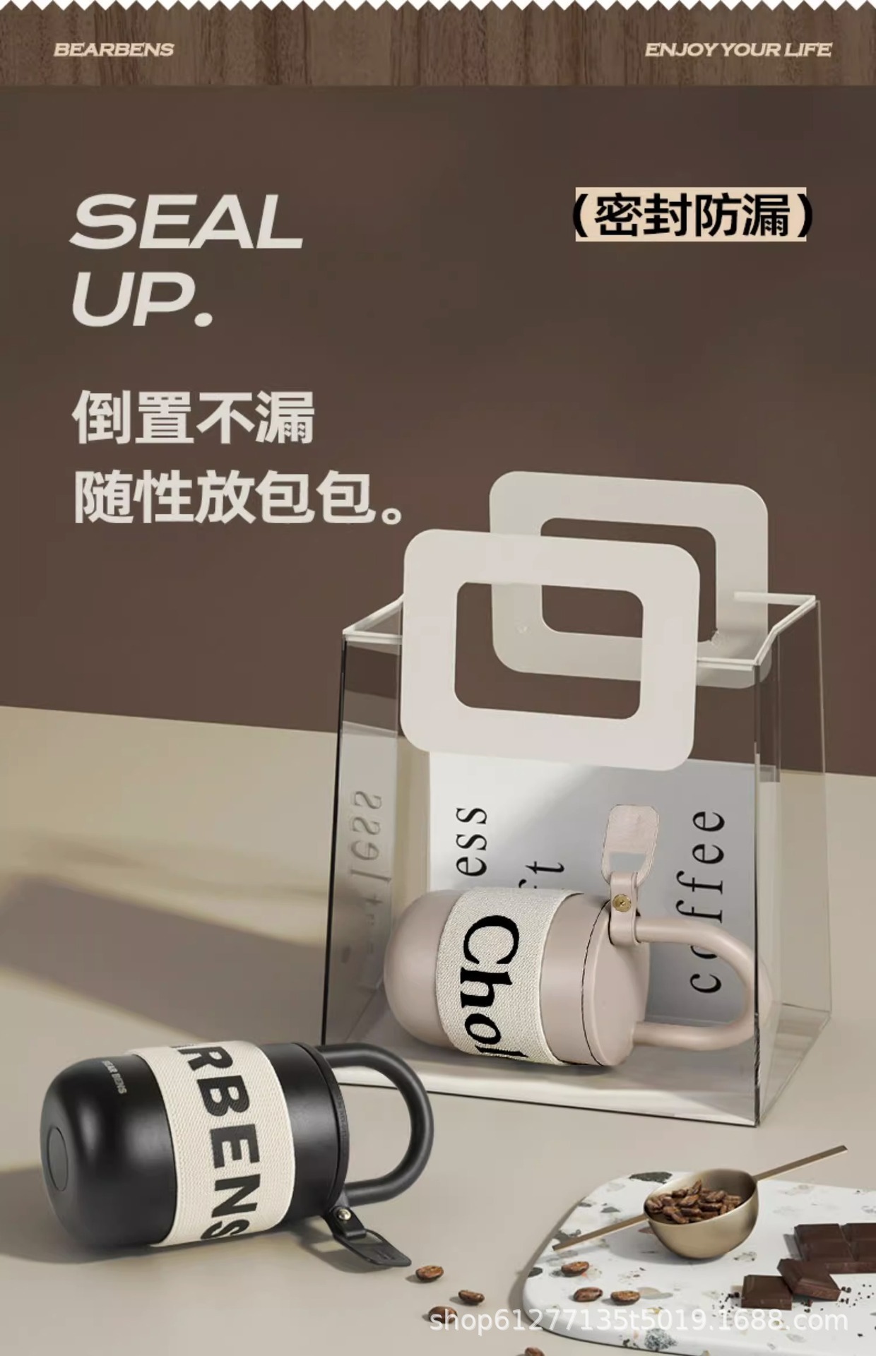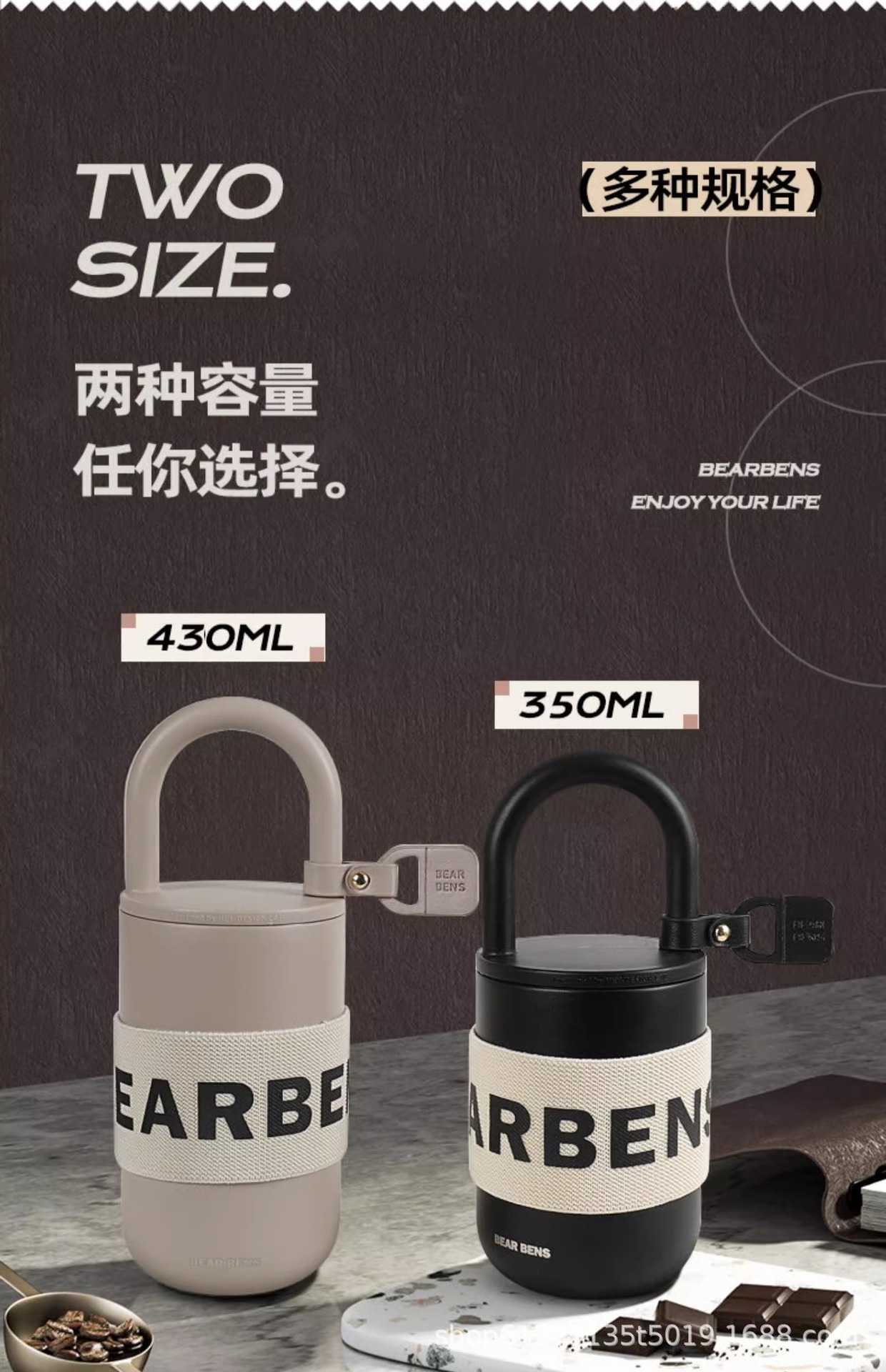 Cốc giữ nhiệt hình khóa BEARBENS Kumamoto có thể đeo chéo, cốc nước đi kèm giá trị cao, cốc cà phê, cốc bán buôn