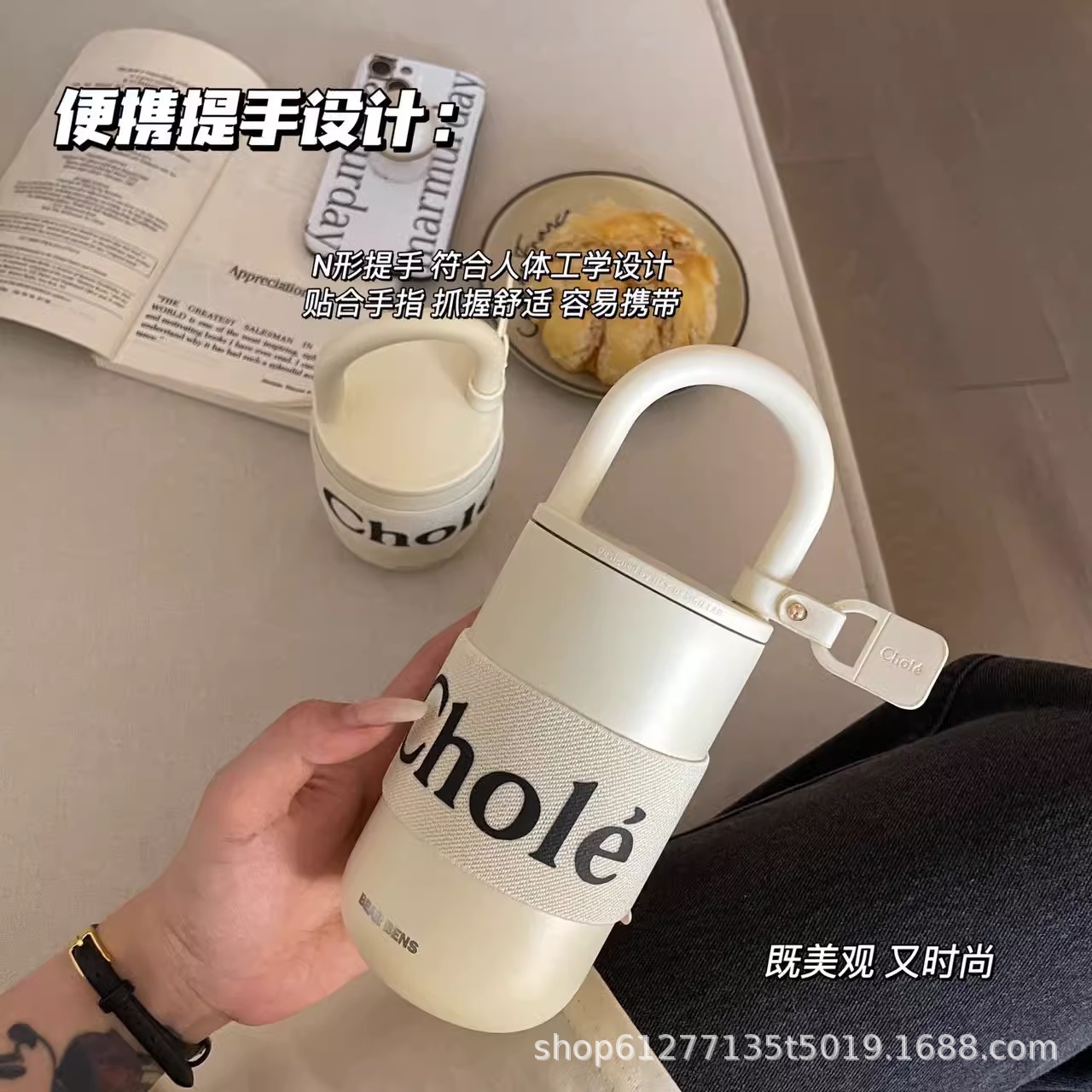 Cốc giữ nhiệt ống hút Big Mac mẫu mới cốc nước dung tích lớn cho nữ bình nước lớn có tay cầm cốc bảo quản lạnh
