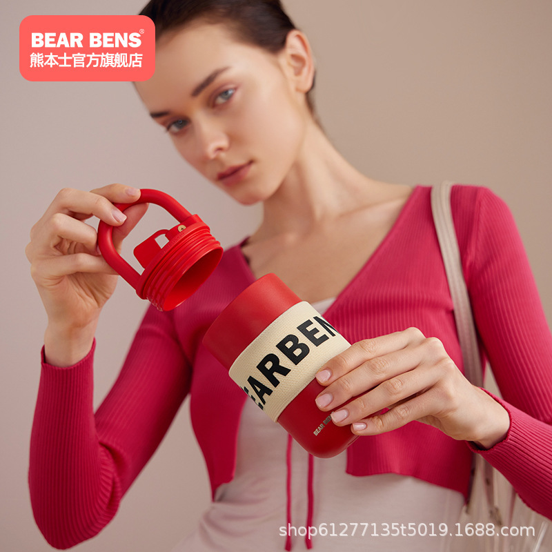 Cốc giữ nhiệt hình khóa Kumamoto BEARBENS cốc nước đi kèm giá trị cao có thể đeo chéo cốc cà phê cốc khóa trái tim