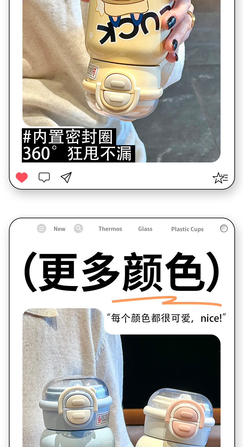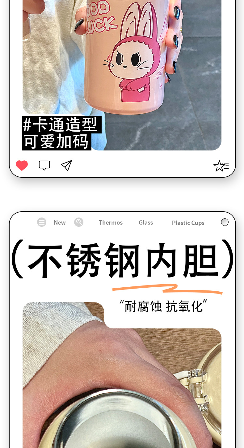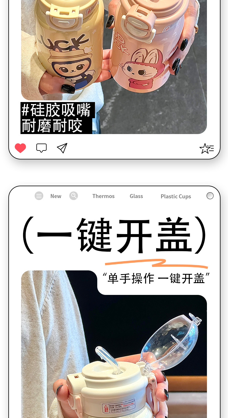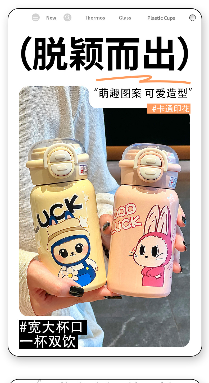 Cốc giữ nhiệt mẫu mới 2025 cốc nước ống hút đôi trẻ em dễ thương cầm tay học sinh dung tích lớn hoạt hình