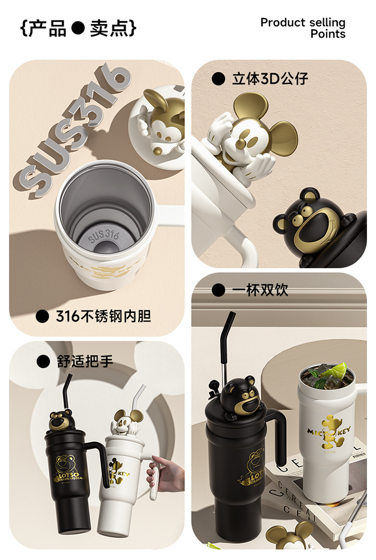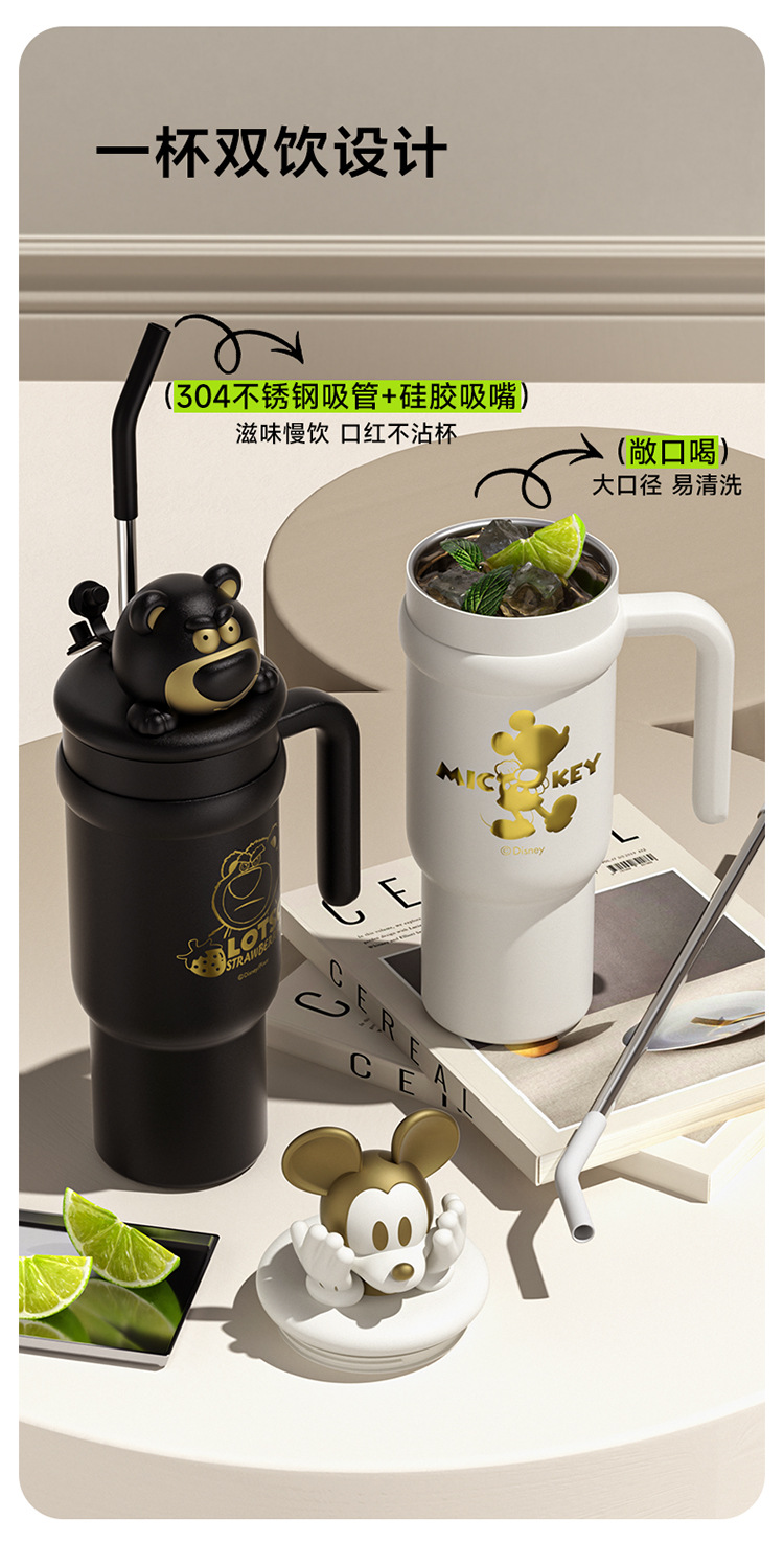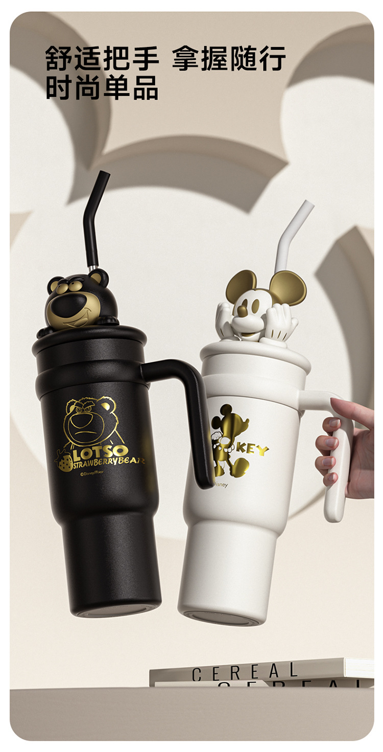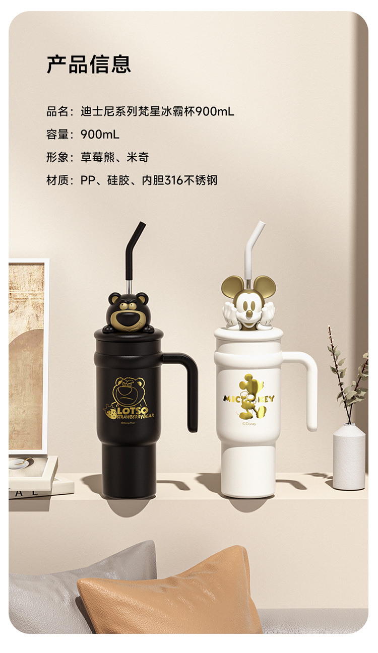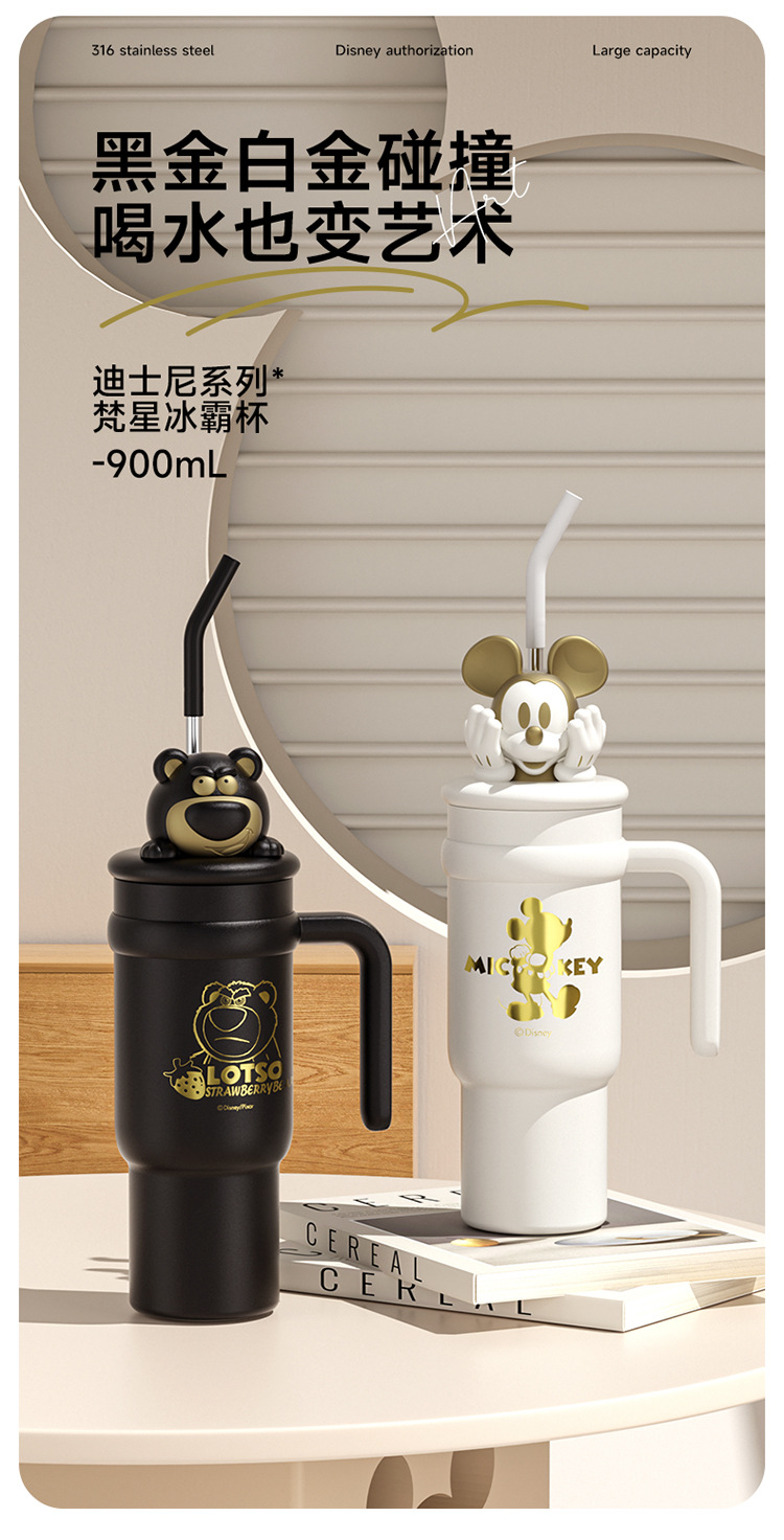 Cốc giữ nhiệt Mickey Strawberry Bear Cốc nước trẻ em mẫu mới 2024 có giá trị cao cho nữ Cốc nước đá dung tích lớn cho học sinh