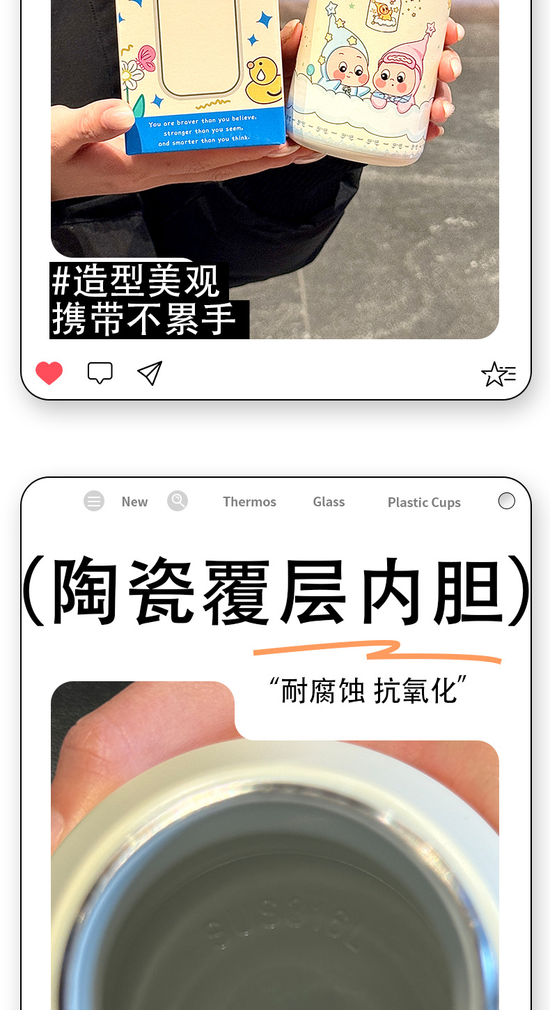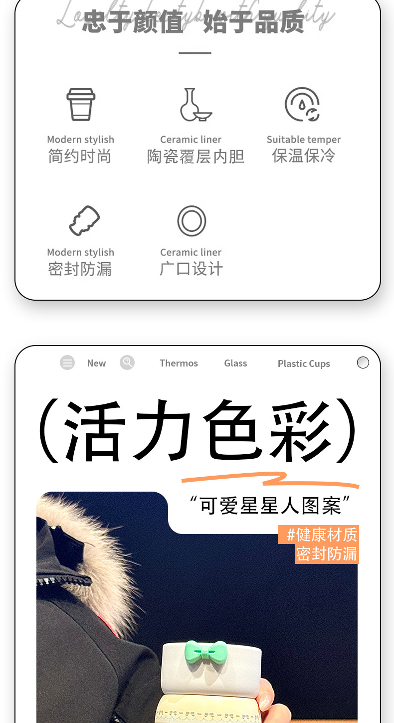 Cốc giữ nhiệt ngôi sao cốc có túi lót gốm sứ giá trị cao cho nữ mẫu mới 2026 cốc nước mini cầm tay trẻ em