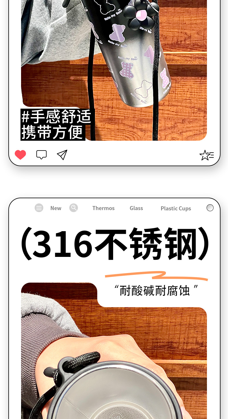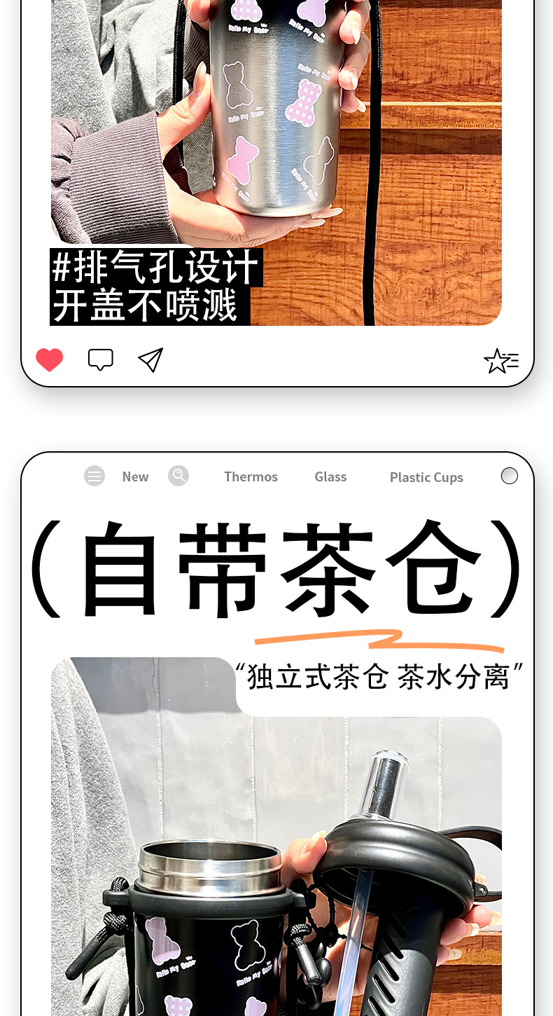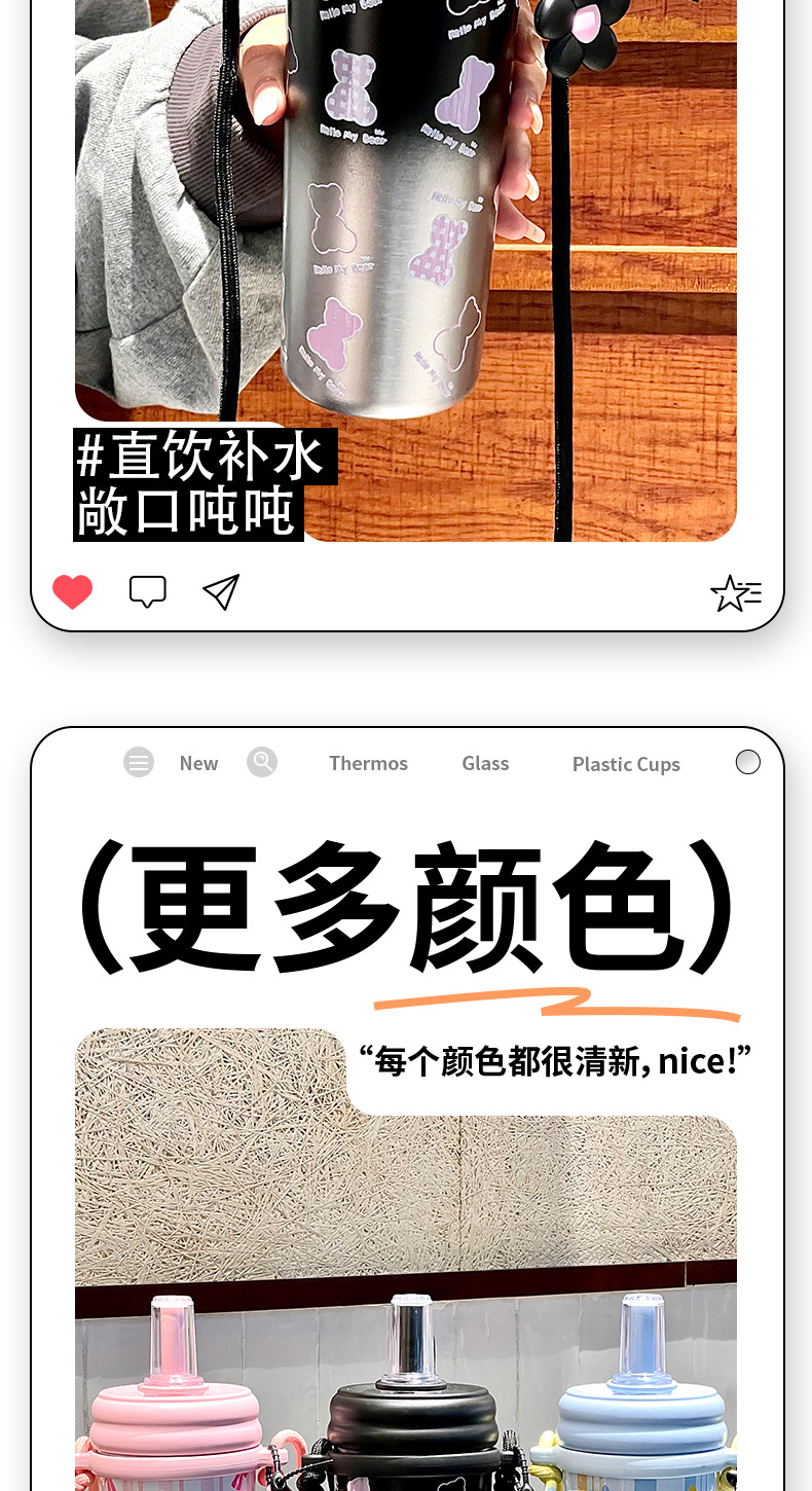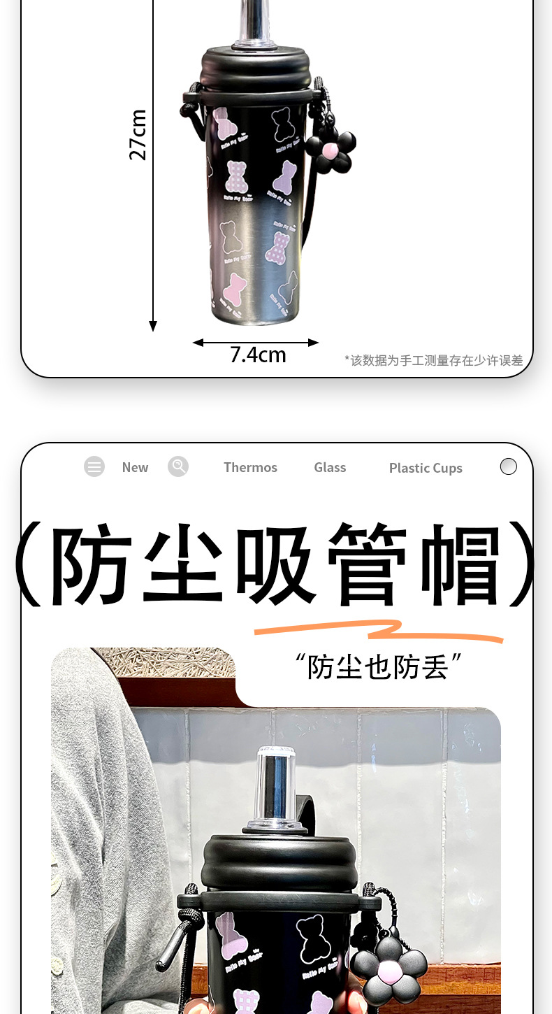 Cốc giữ nhiệt ống hút, cốc nước dung tích lớn có dây đeo 2024 kiểu mới có giá trị cao cho bé gái, Cốc trẻ em dễ thương