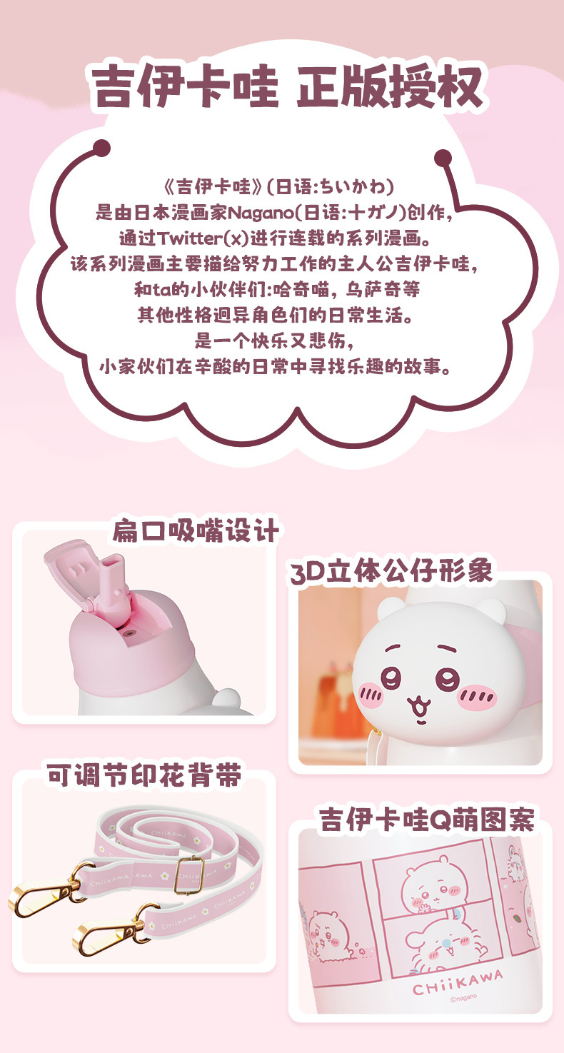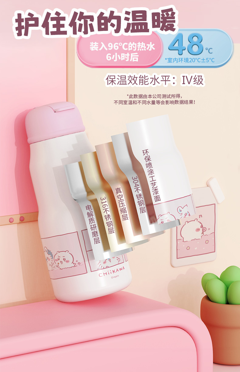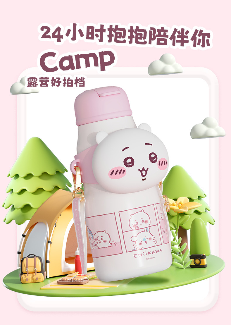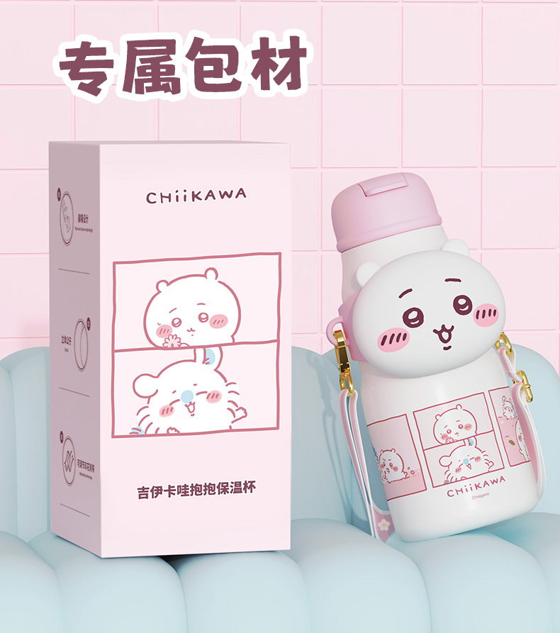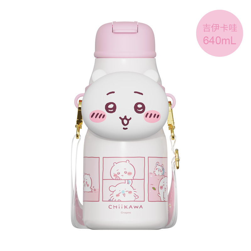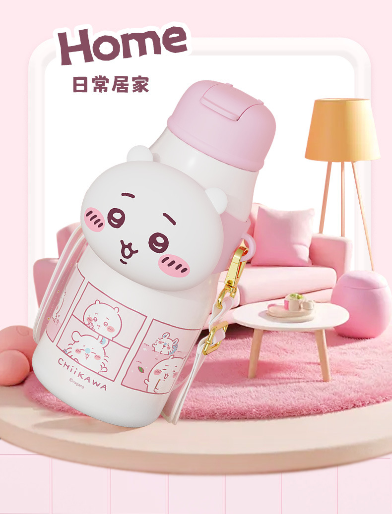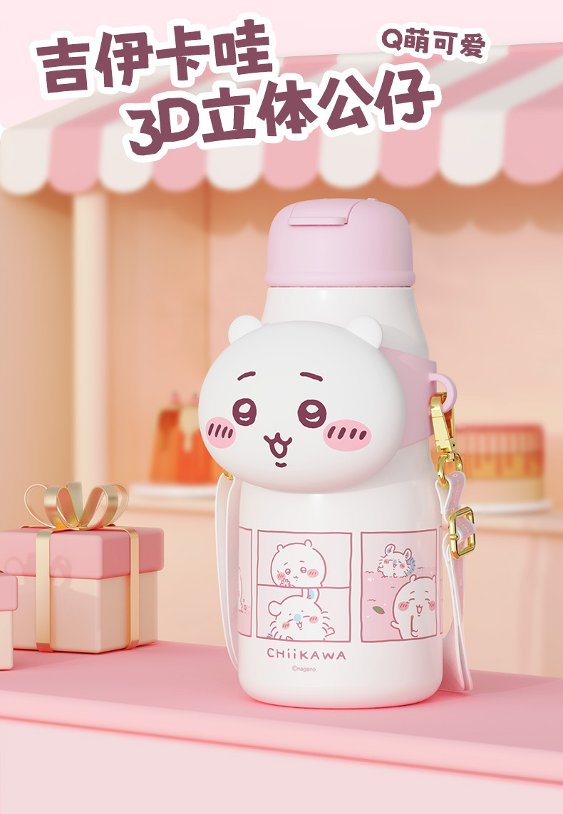 Cốc giữ nhiệt ống hút Giika Wah chiikawa cốc đựng nước có giá trị cao cho bé gái 316 cầm tay học sinh đáng yêu