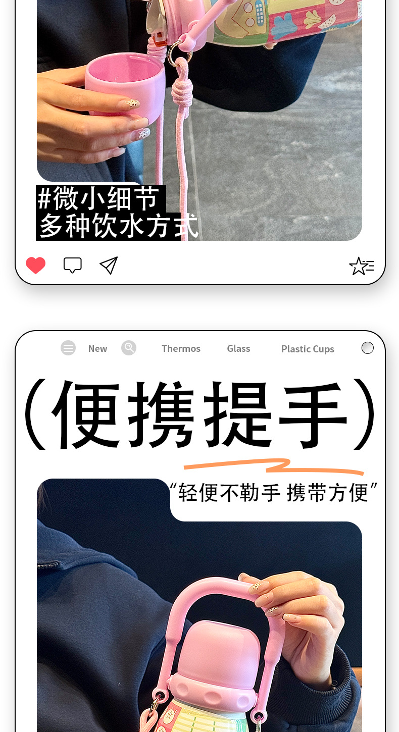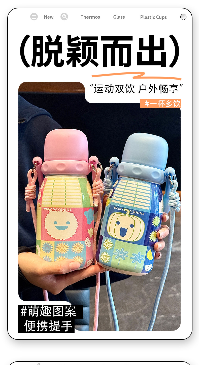Cốc giữ nhiệt ống hút mẫu mới 2025 Bình nước có giá trị cao cho bé gái, cốc cầm tay đi chơi, cốc nước đi kèm dung tích lớn