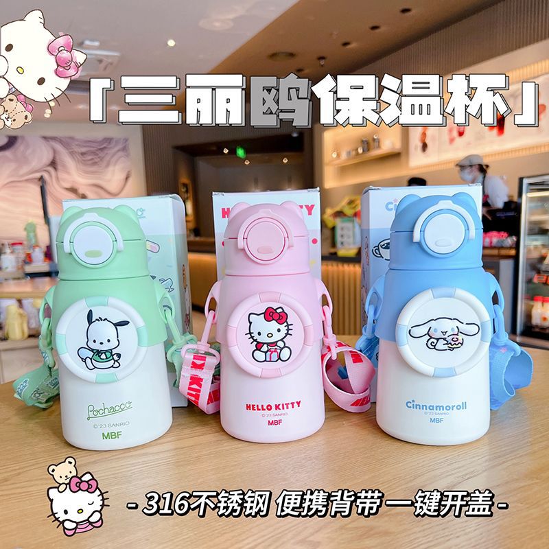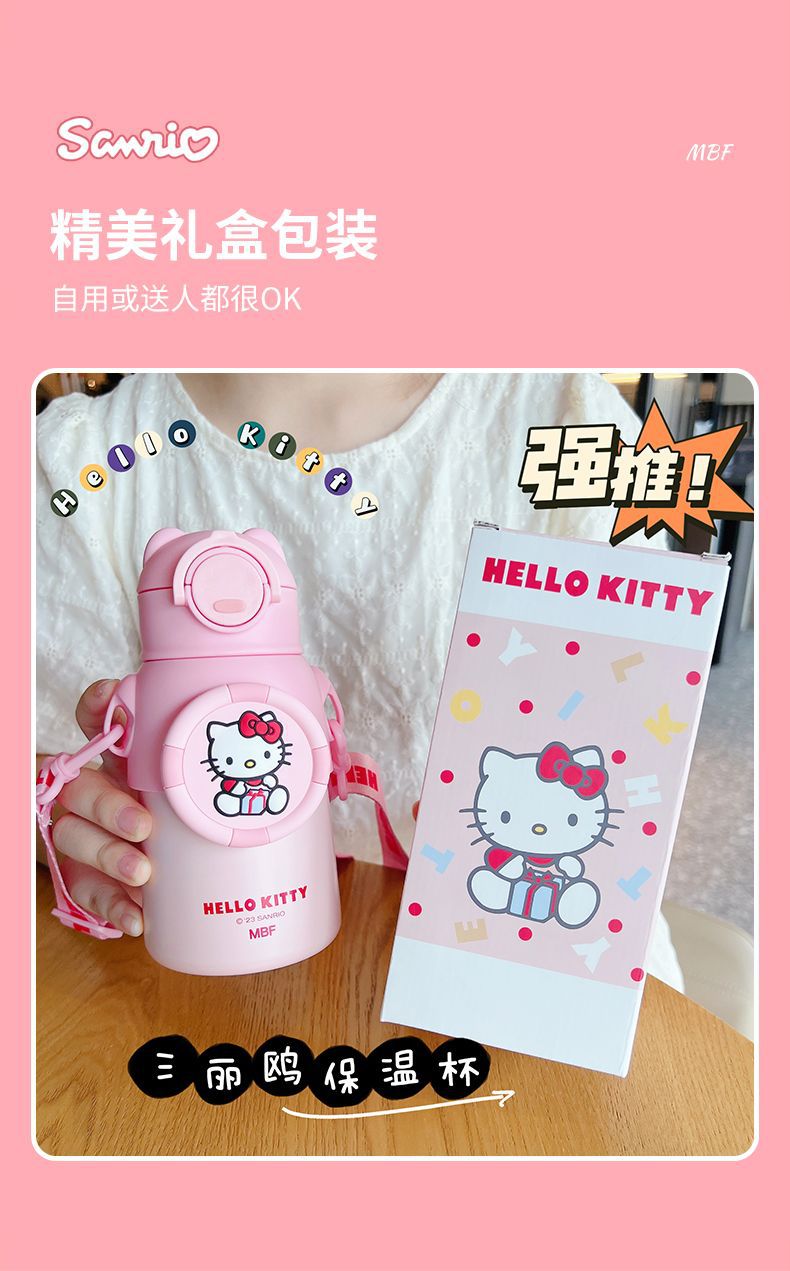 Cốc giữ nhiệt Sanrio Hello Kitty Merletti bình nước cầm tay chuyên dụng cho học sinh ĐI HỌC Cốc ống hút cầm tay 316