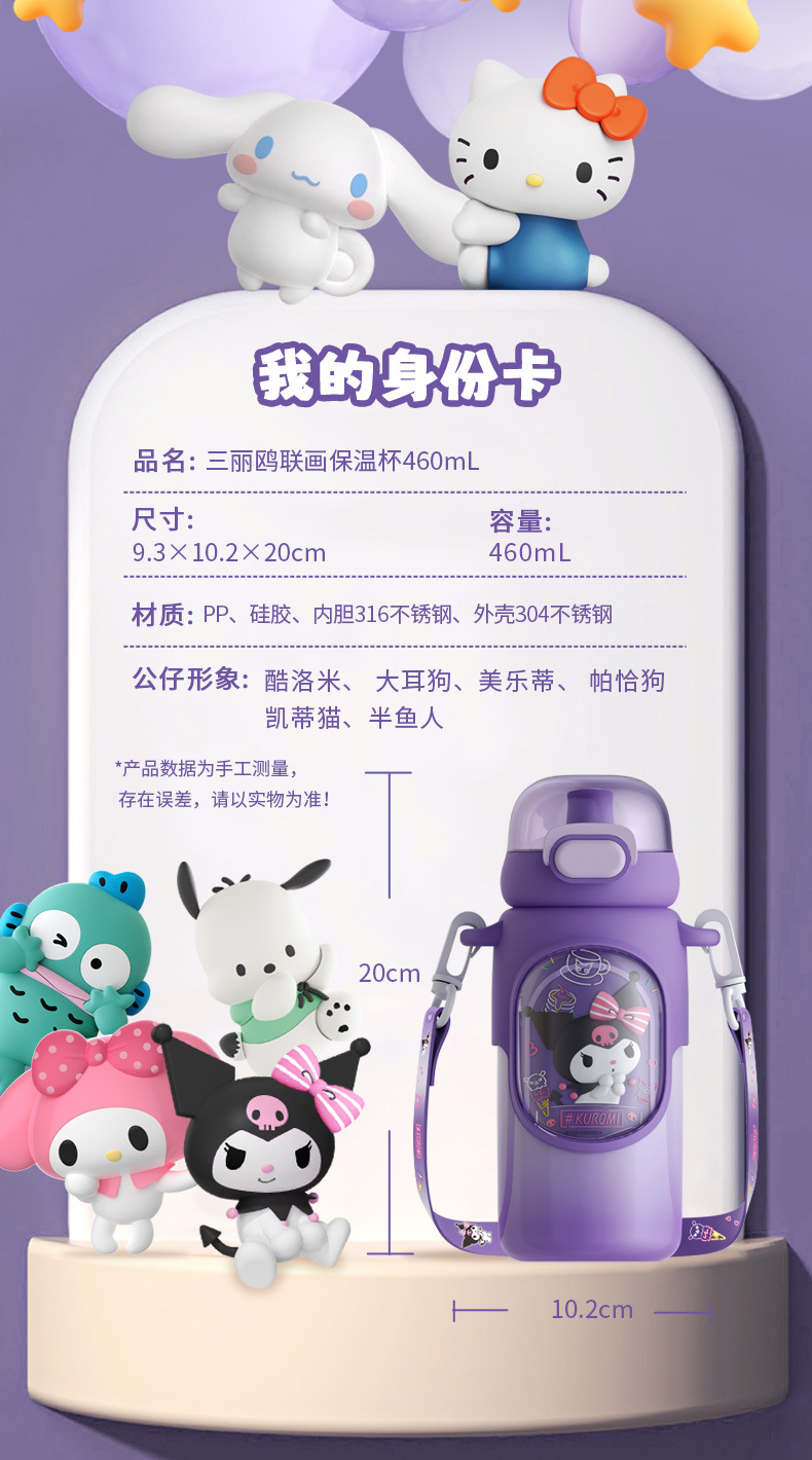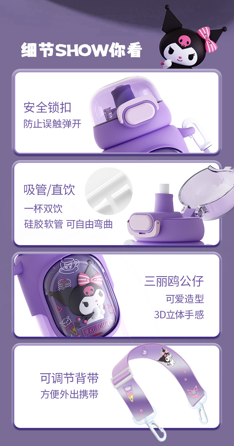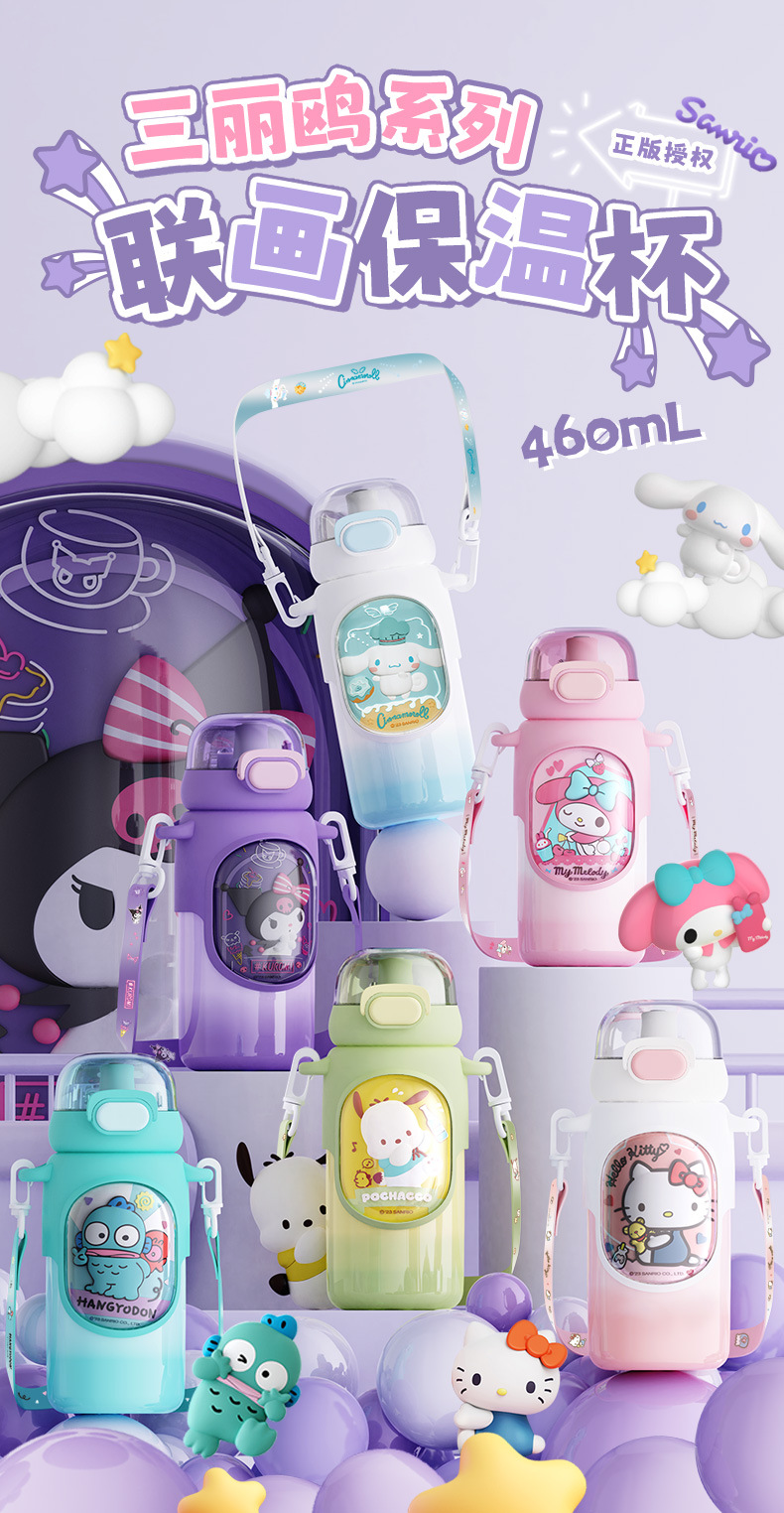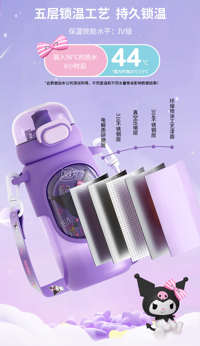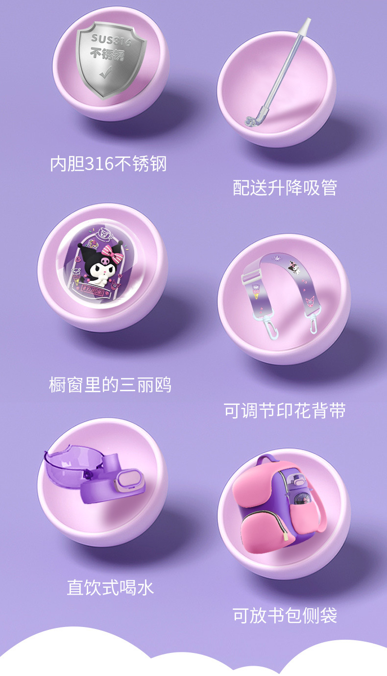 Cốc giữ nhiệt Sanrio lồng Tranh cốc nước trẻ em Kulomi Cốc ống hút Inox 316 cốc nữ sinh giá trị cao