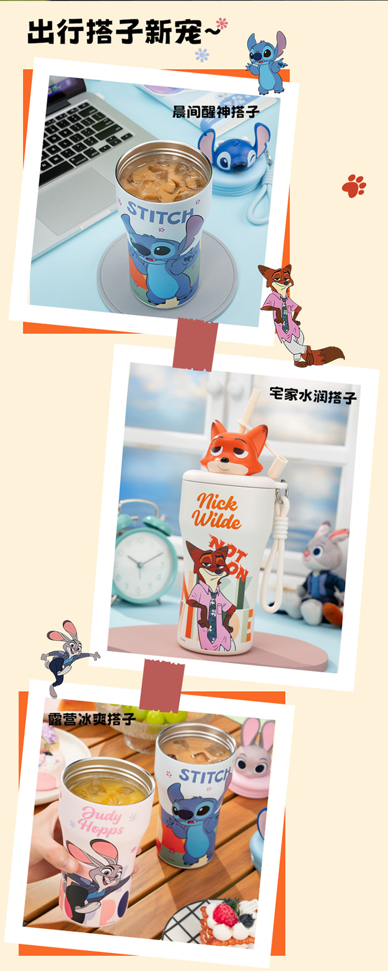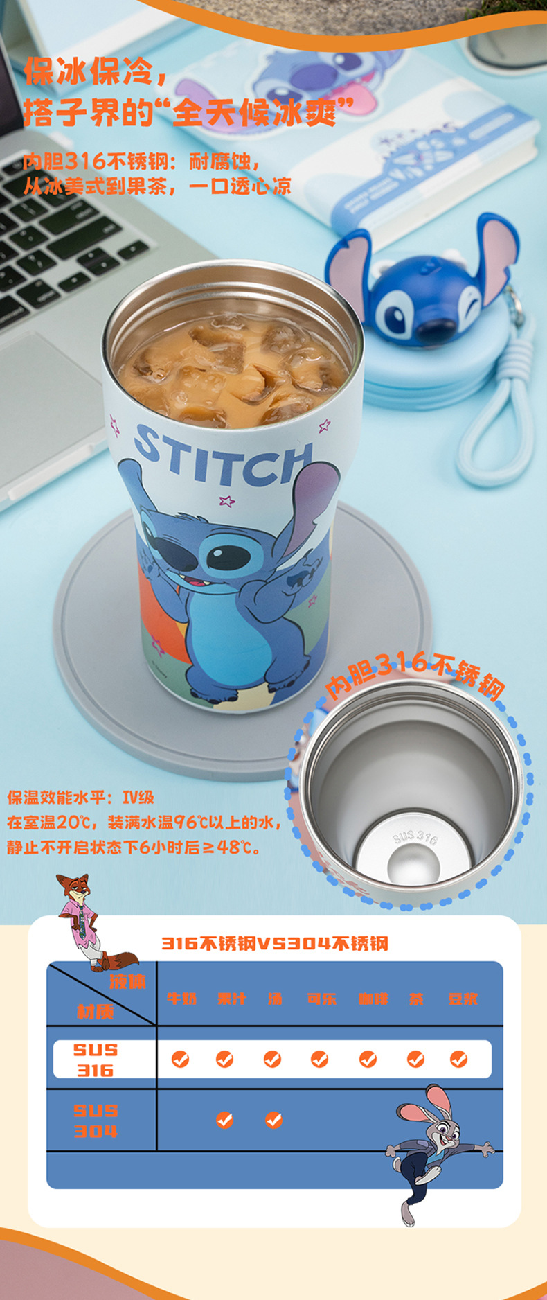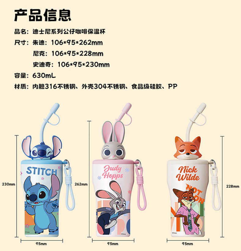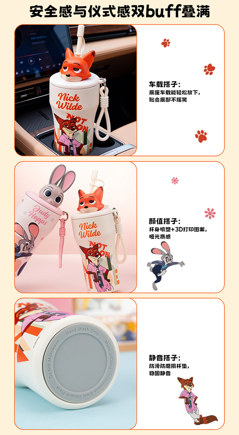 Cốc giữ nhiệt thành phố động vật điên cốc cà phê hoạt hình Judy Nick Stitch cốc cà phê 316 thép không gỉ xe hơi
