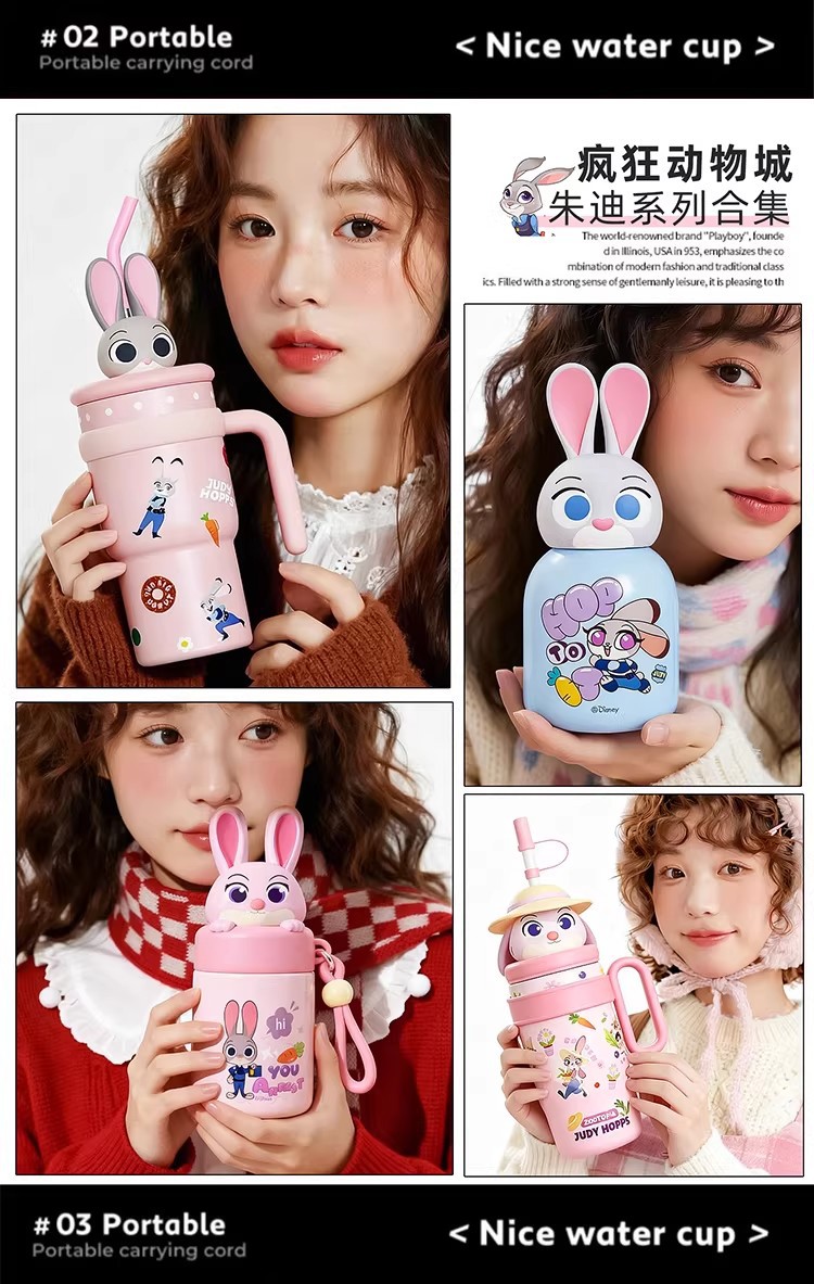 Cốc giữ nhiệt trẻ em Crazy Animal City Judy cốc đặc biệt cho bé gái đi học cốc nước giá trị cao mẫu mới 2025
