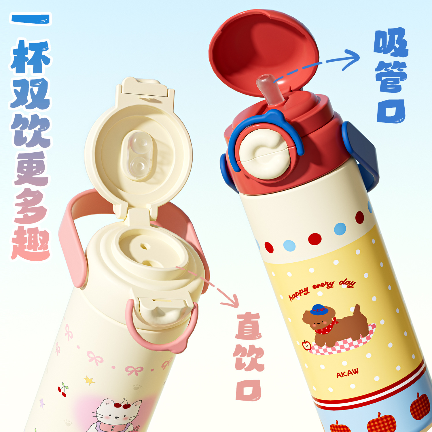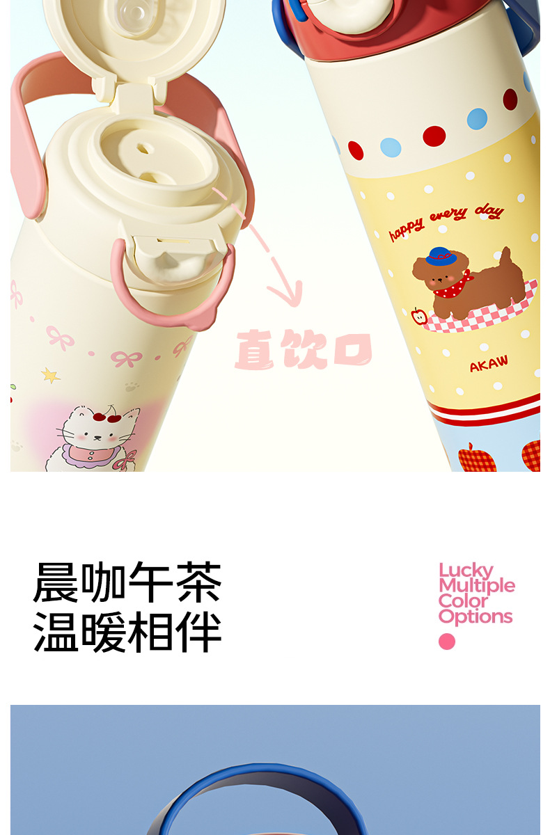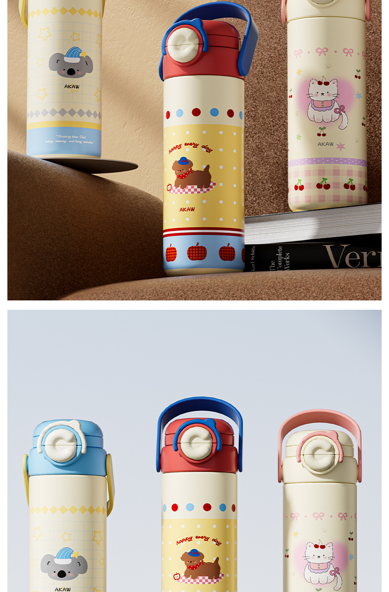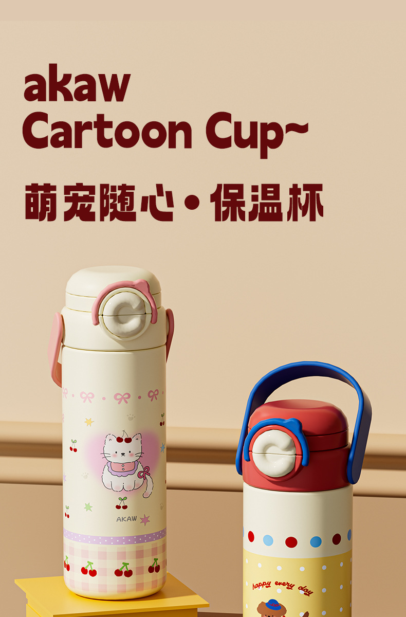 Cốc giữ nhiệt trẻ em dễ thương mẫu mới Cốc ống hút xách tay nữ cốc nước dung tích lớn Bình nước chuyên dụng cho học sinh nam đi học