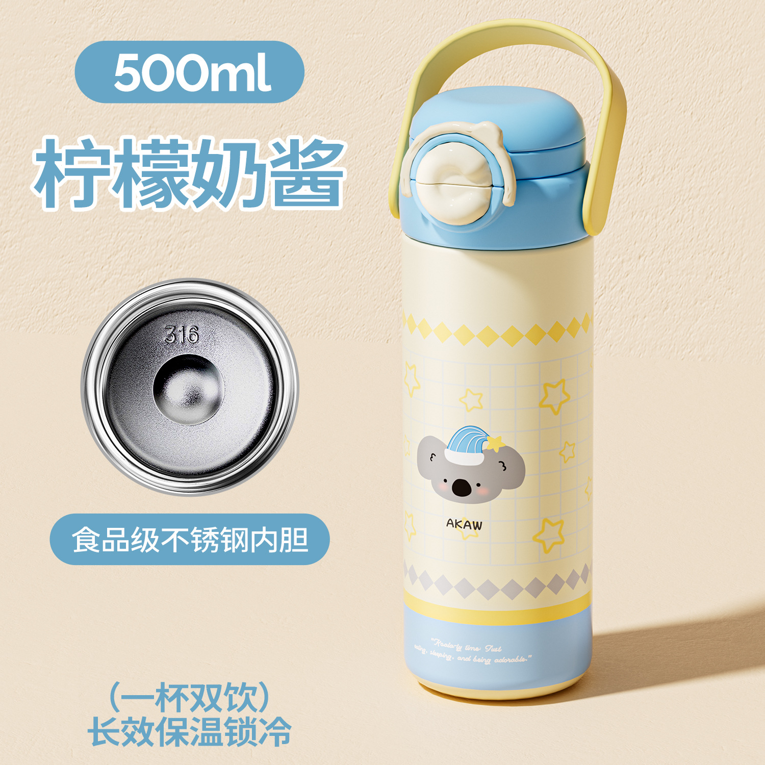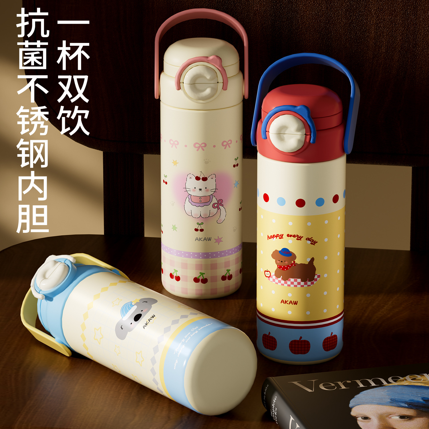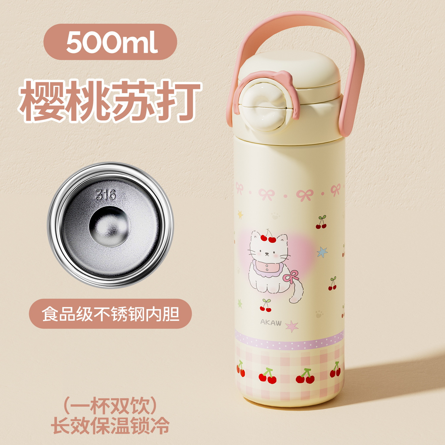 Cốc giữ nhiệt trẻ em dễ thương mẫu mới Cốc ống hút xách tay nữ cốc nước dung tích lớn Bình nước chuyên dụng cho học sinh nam đi học