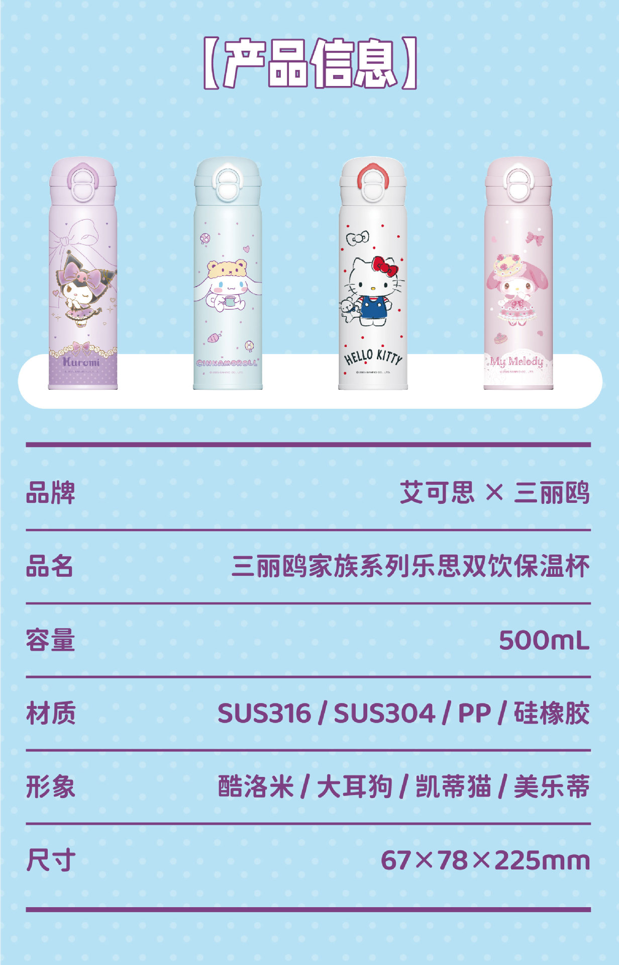 Hello Kitty ,Kulomi ,Chó tai to ,Merletti ,Gấu dâu tây ,Nick ,Chu Di ,Stitch ,Khuôn viên trường mới ,Mickey ,Minnie ,Người nhện ,Hello Kitty Niềm Vui-530ml ,Chó tai to hạnh phúc-530ml ,Niềm vui của Lomi mát mẻ-530ml ,Niềm vui của Merletti-530ml ,Hello Kitty-400ml ,Shu Xin Cool Lomi ,Chó tai to Shu Xin |