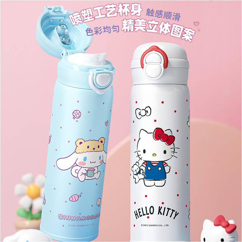 Cốc giữ nhiệt trẻ em Sanrio Culomi Hello Kitty 316 cốc nước ống hút uống đôi cho bé gái học sinh tiểu học cấp thực phẩm