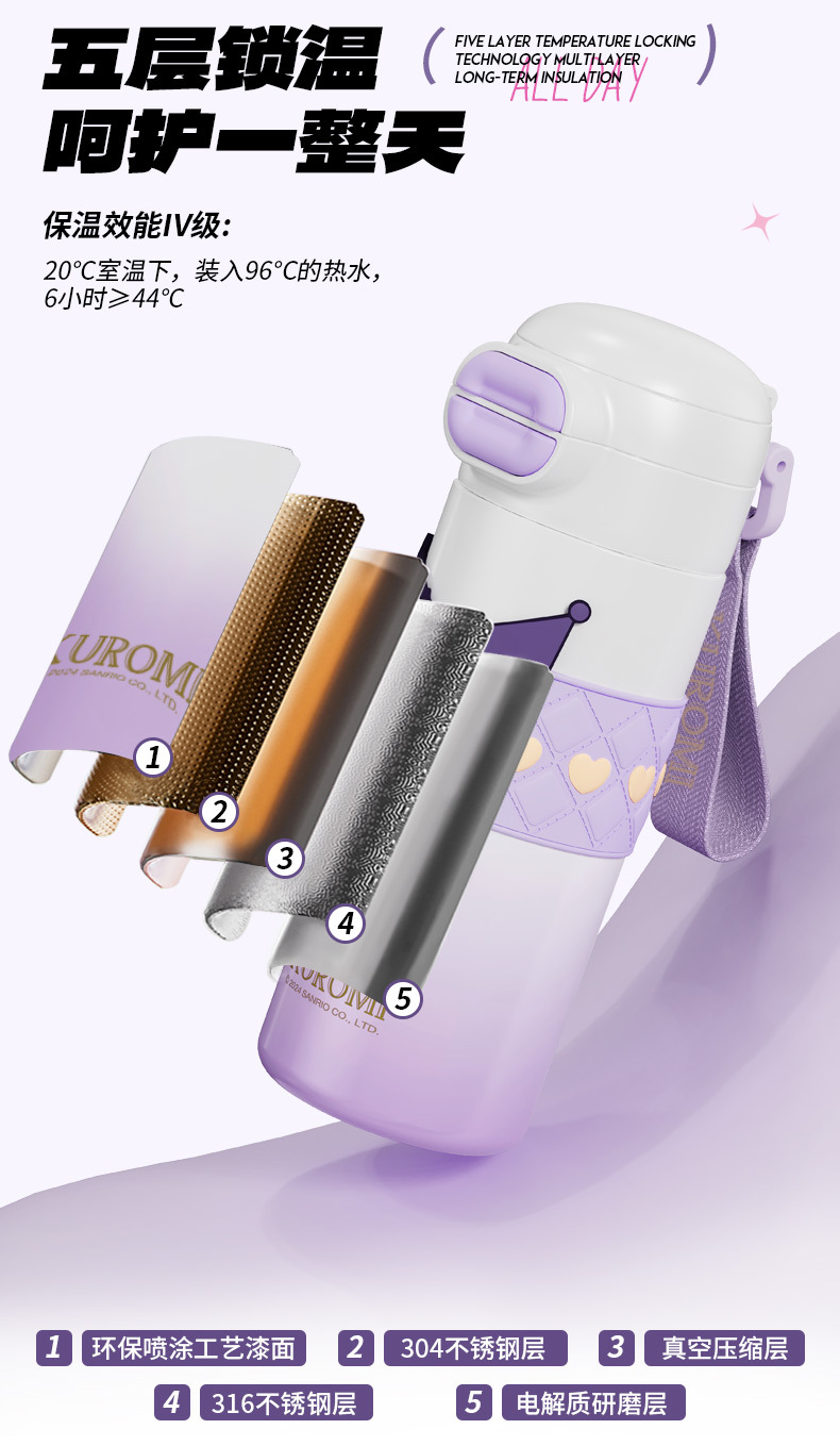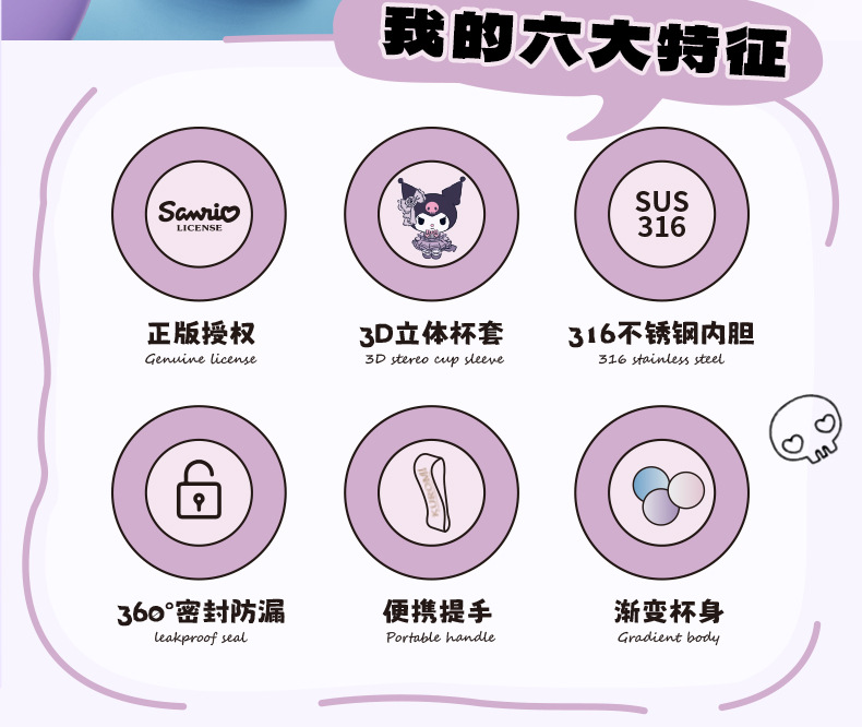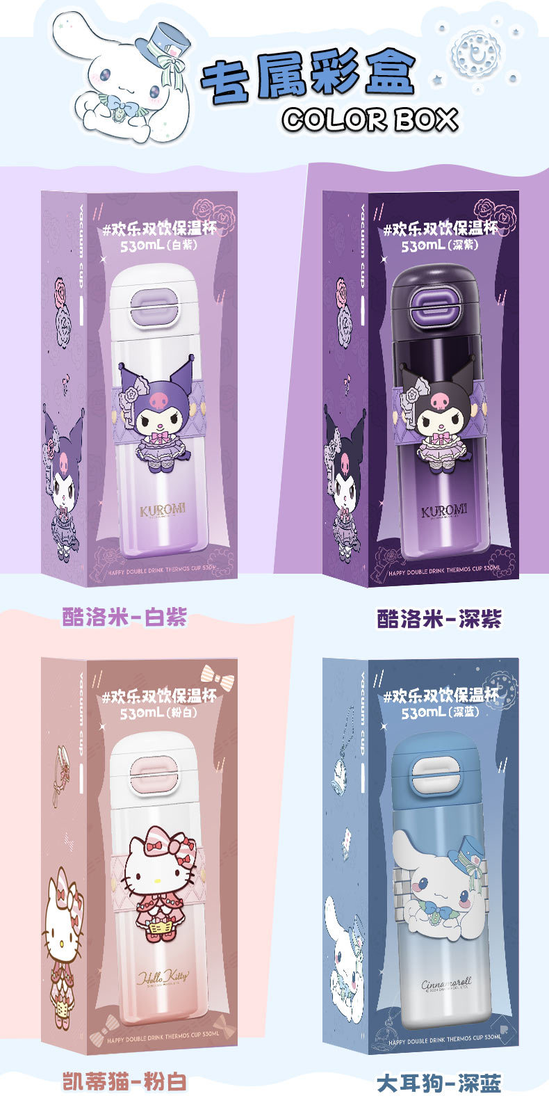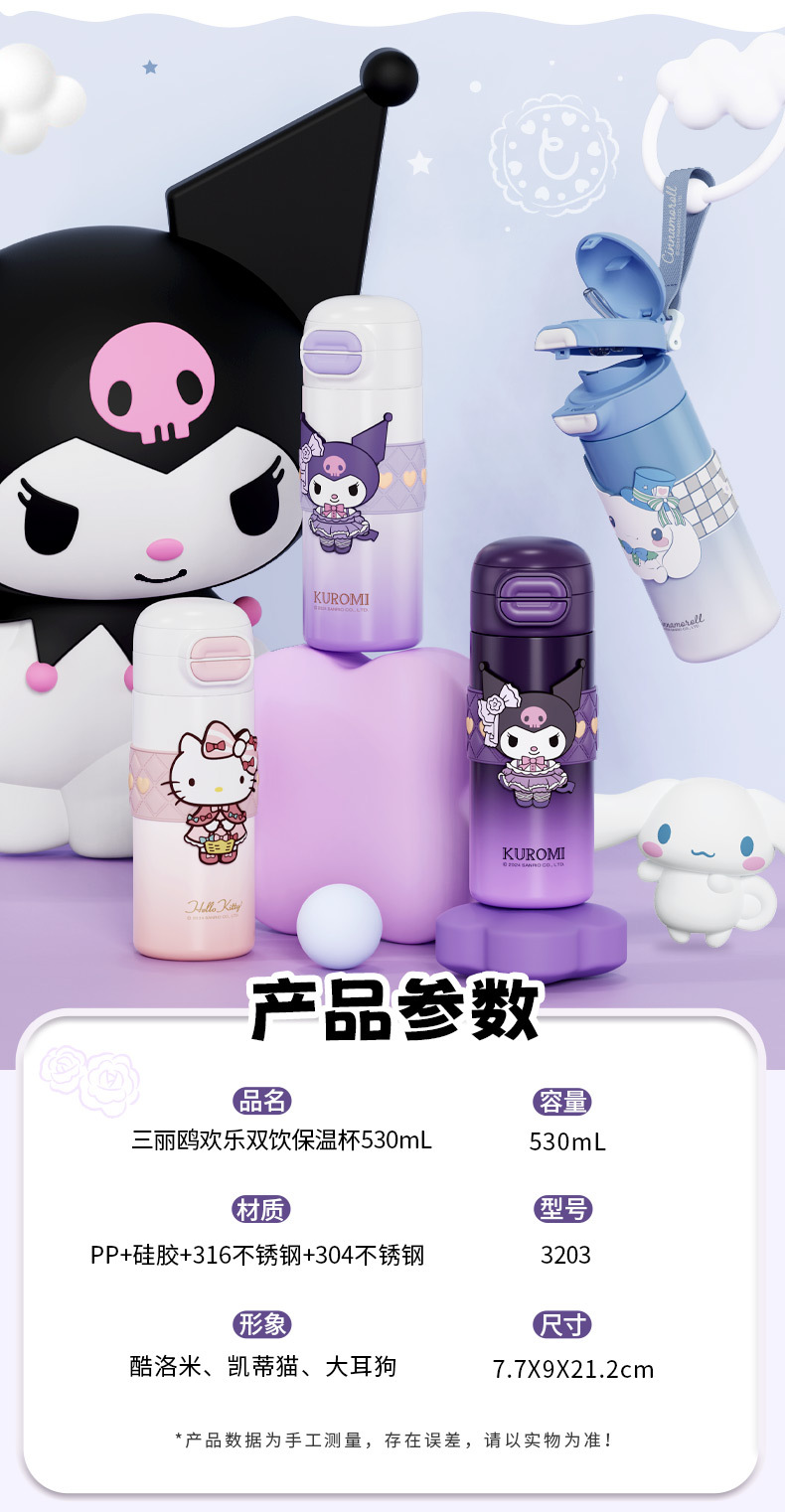 Cốc giữ nhiệt trẻ em Sanrio Kulomi dành cho nữ có giá trị cao có ống hút cốc uống đôi xách tay cho học sinh tiểu học
