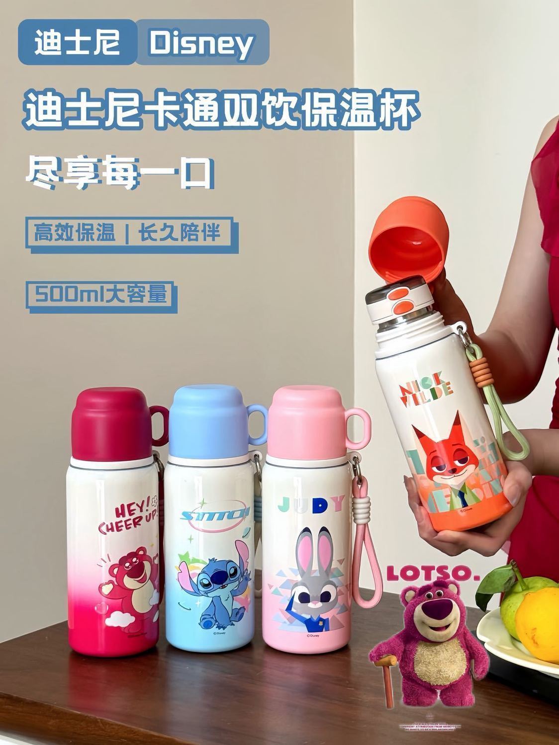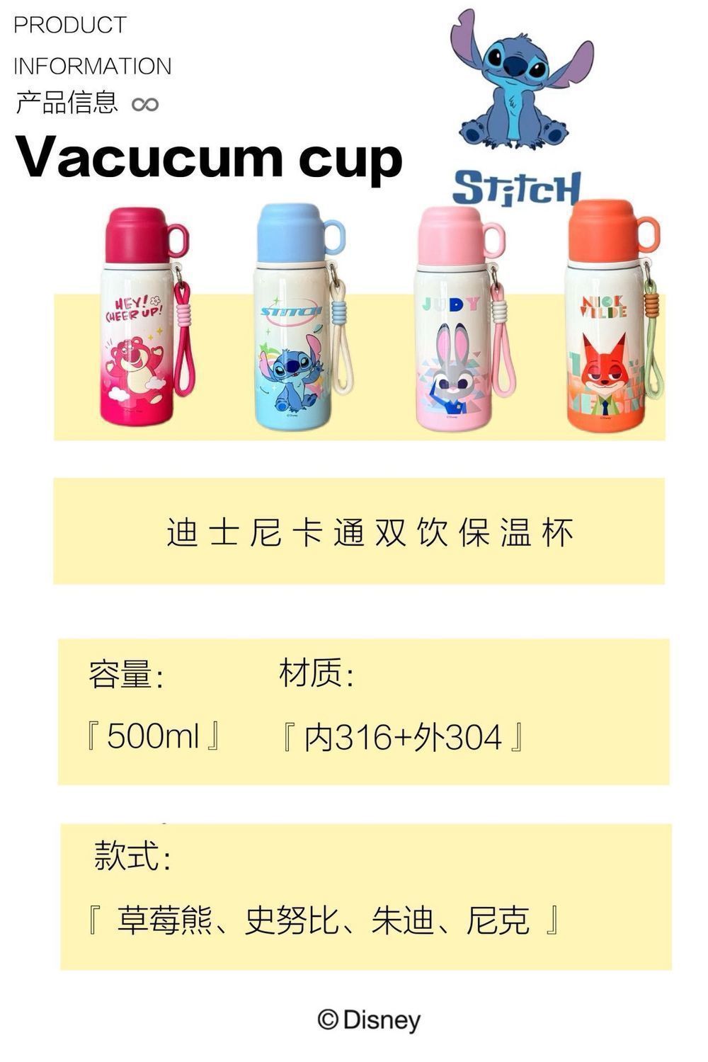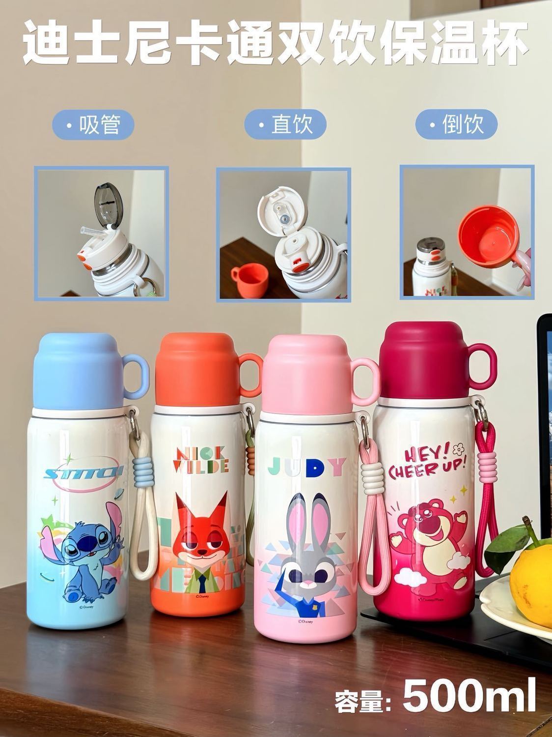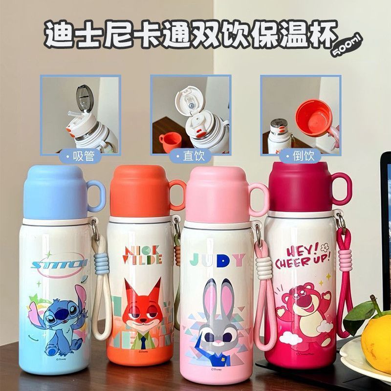 Cốc hút chân không Disney Crazy Animal City, cốc uống đôi đáng yêu dành cho nữ, chai nước trẻ em, Quà Tặng Học sinh