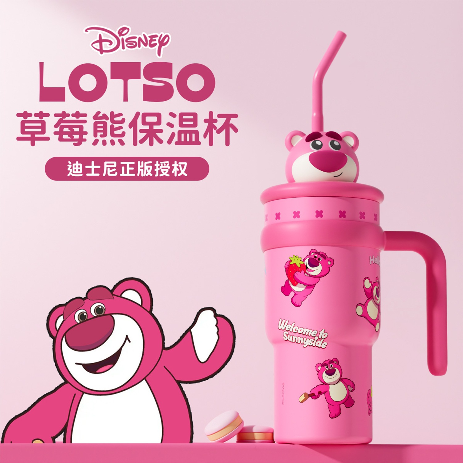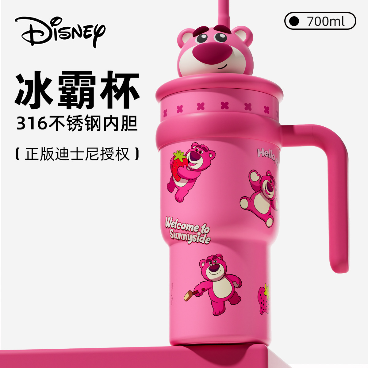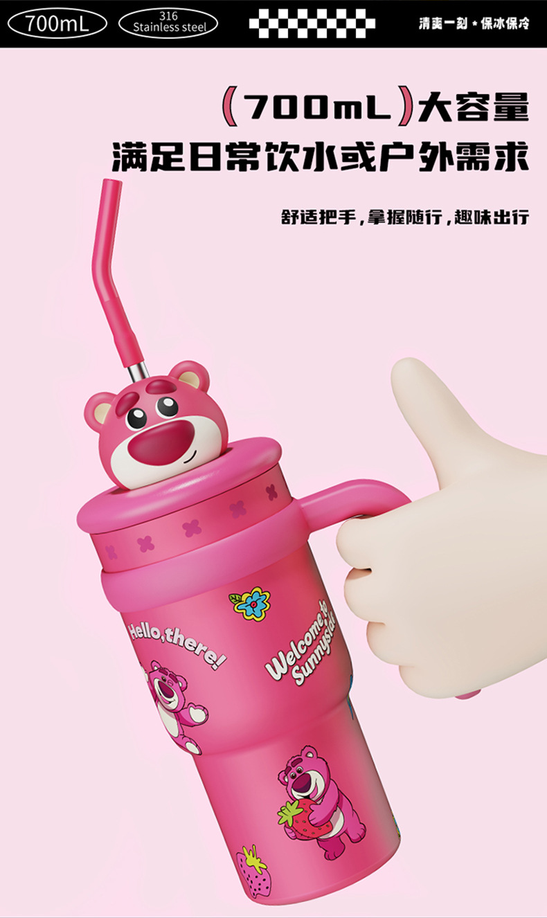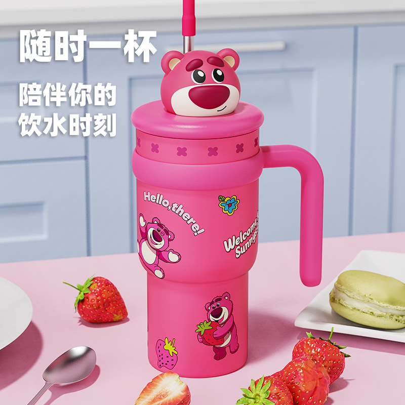 Cốc hút chân không gấu dâu Disney cốc nước ống hút khổng lồ cốc 316 nước đá dung tích lớn mới có giá trị cao