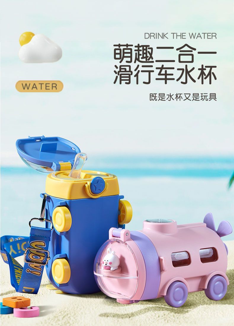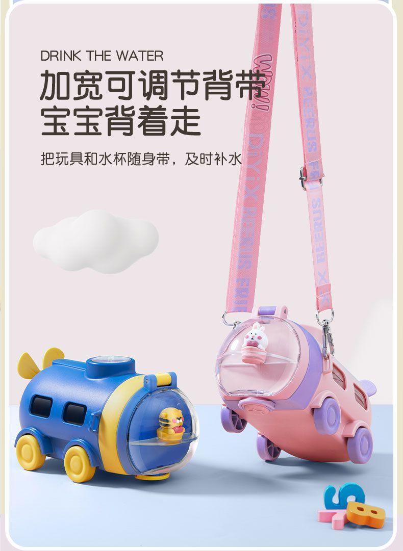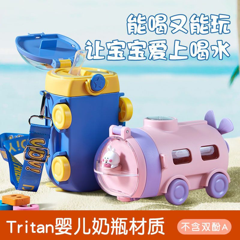 Cốc nước cho trẻ em Cốc ống hút tàu ngầm hoạt hình mùa hè cho bé trai bé gái đi học mẫu giáo chuyên dụng cho xe hơi