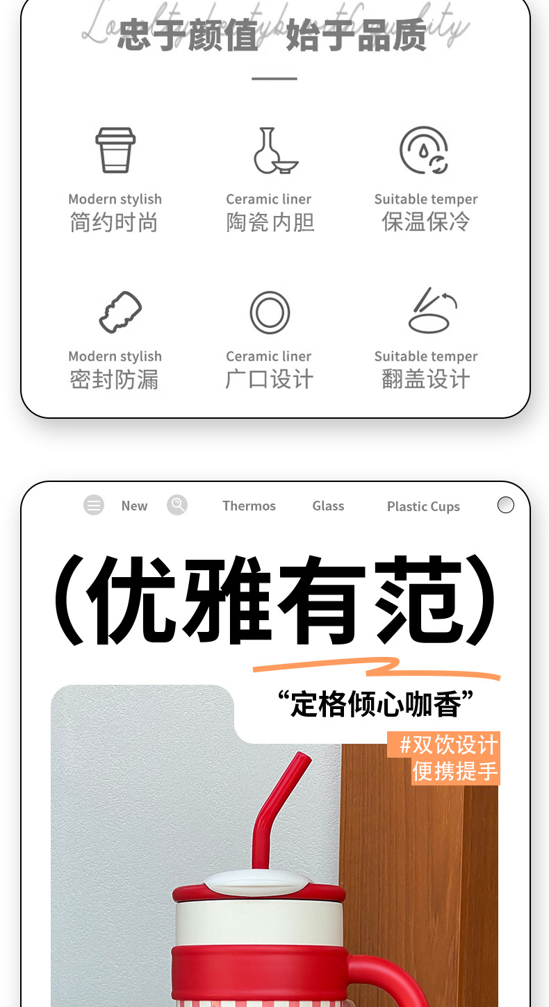 Cốc giữ Nhiệt Cốc đựng cà phê trên xe dung tích lớn cho nữ cốc cốc nước ống hút học sinh nam trẻ em giá trị cao