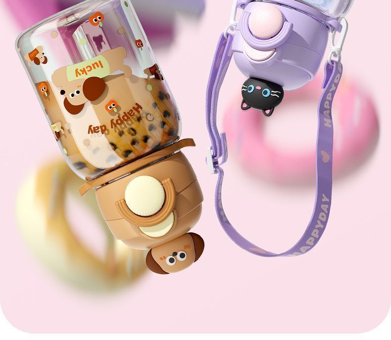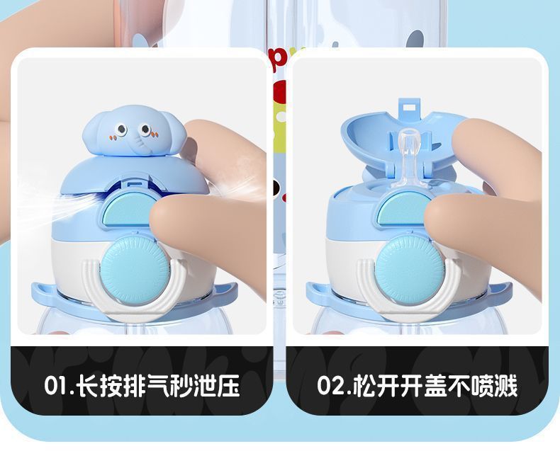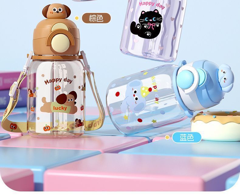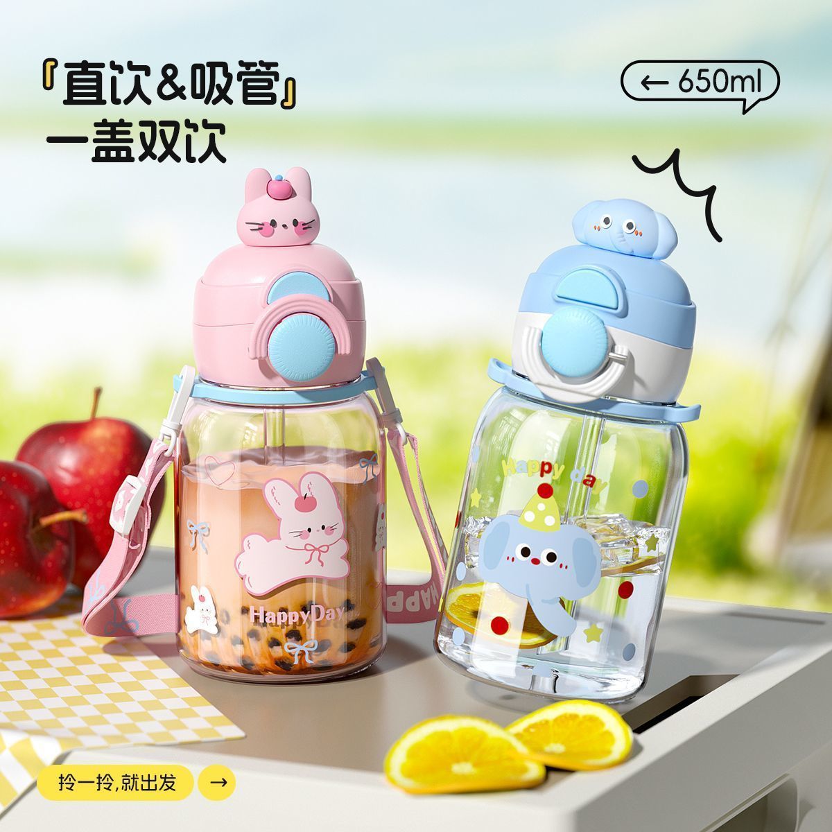 Cốc nước trẻ em cốc nhựa cấp thực phẩm cho học sinh ĐI HỌC đặc biệt cầm tay mẫu giáo mùa hè Bình nước uống đôi cốc hút