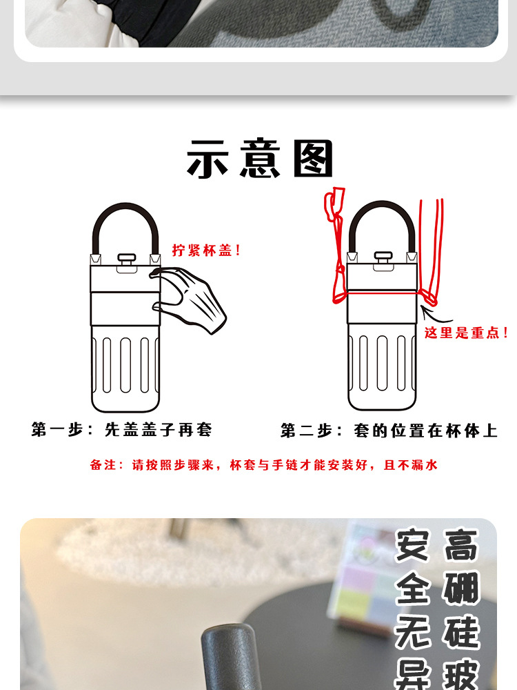 Cốc thủy tinh đựng nước uống gia đình chịu nhiệt độ cao giá trị cao cho bé gái cốc có nắp 2024 cốc sữa đơn giản mẫu mới