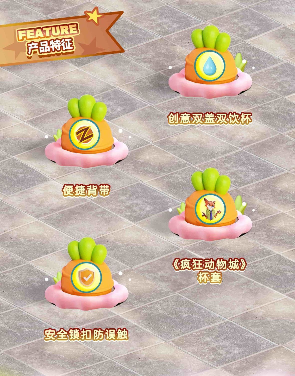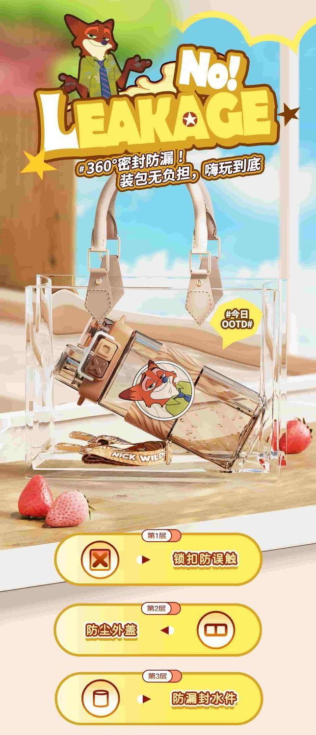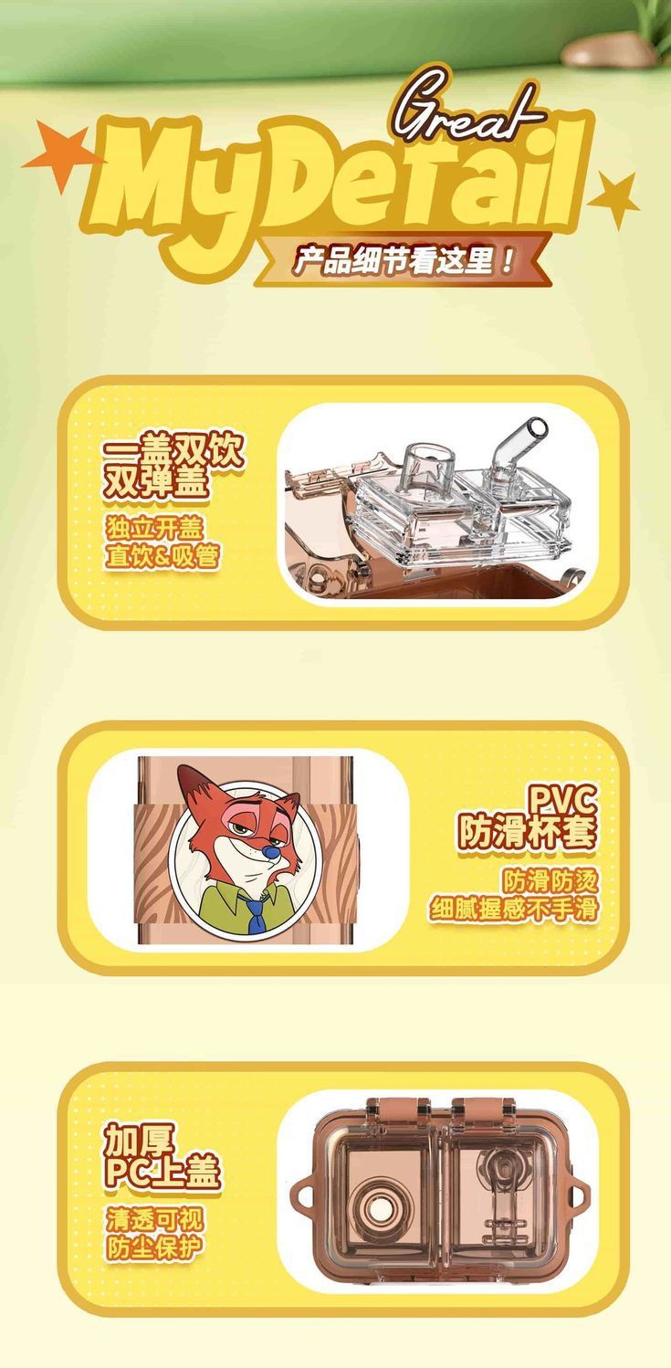 Cốc uống đôi Crazy Animal City Judinik Cốc uống đôi cho trẻ em Cốc chuyên dùng cho trường học Cốc ống hút mùa hè Ấm đun nước cho học sinh