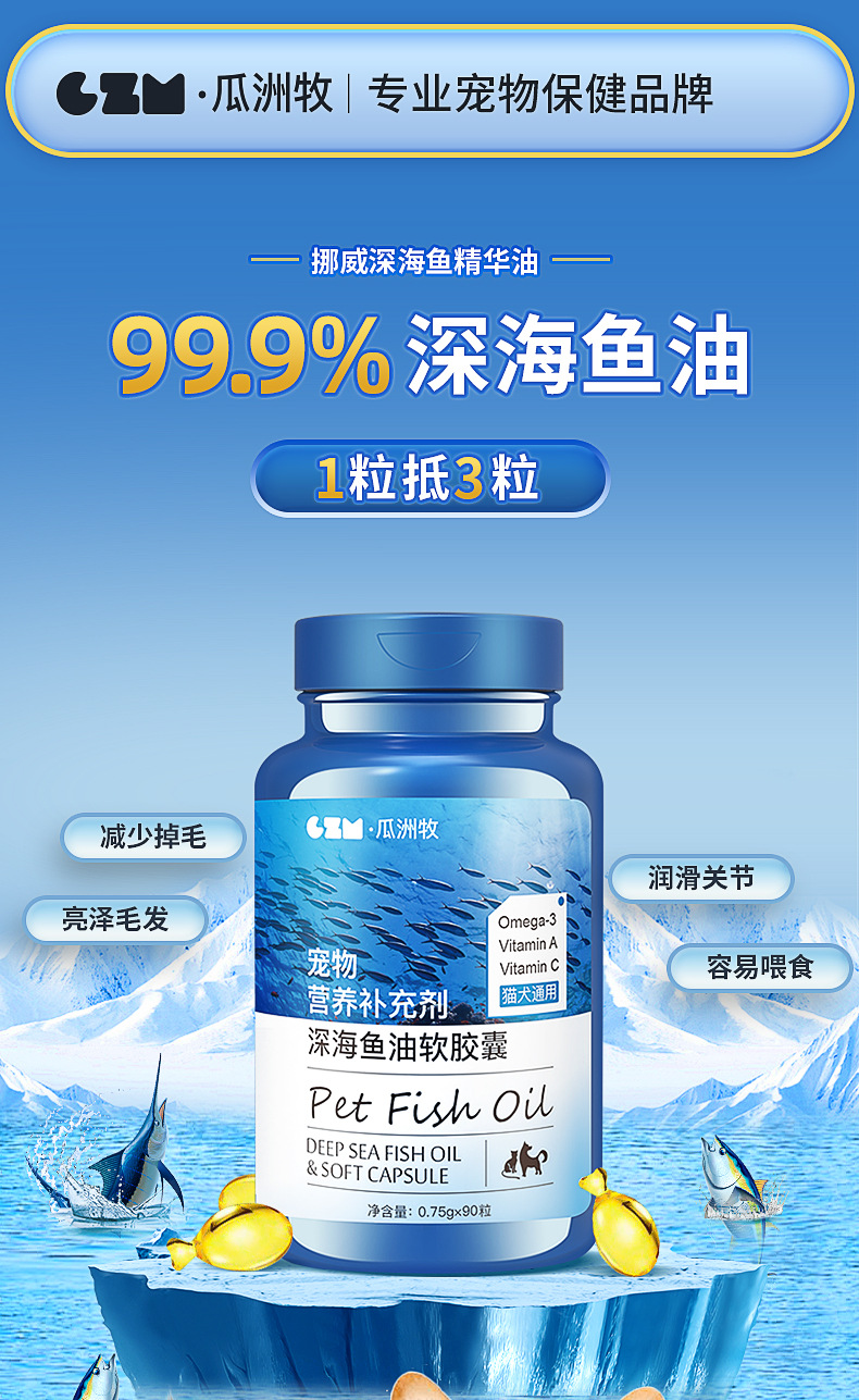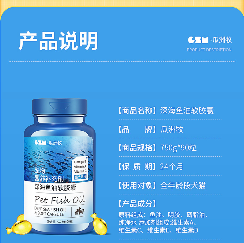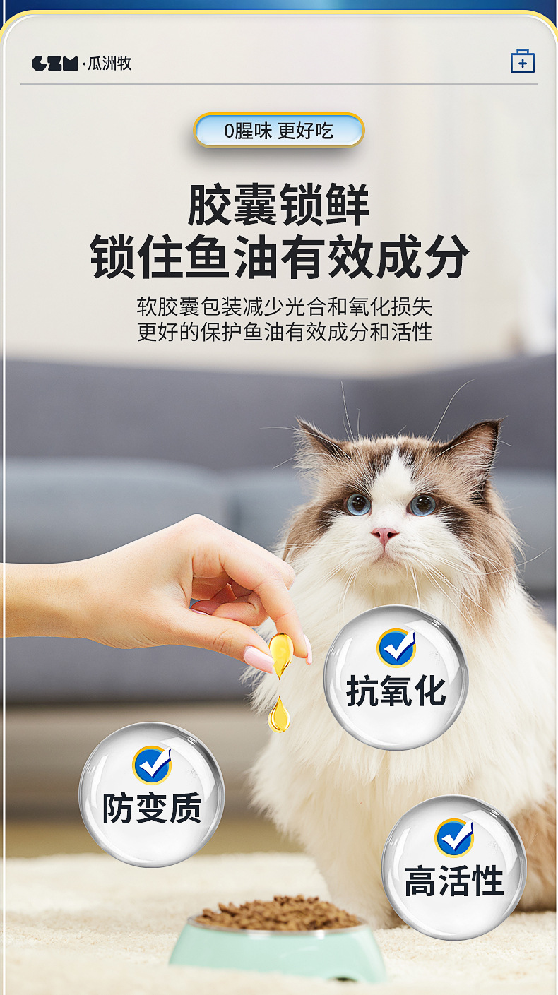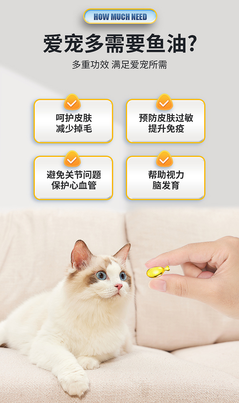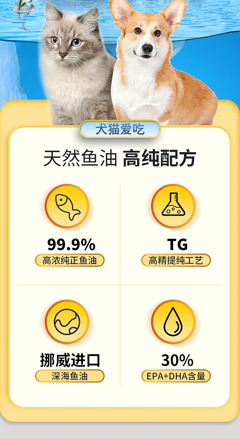 Dầu cá biển sâu cho mèo, chó, chó, chăm sóc da lông đặc biệt cho thú cưng, viên nang Lecithin chống rụng lông, dầu gan cá