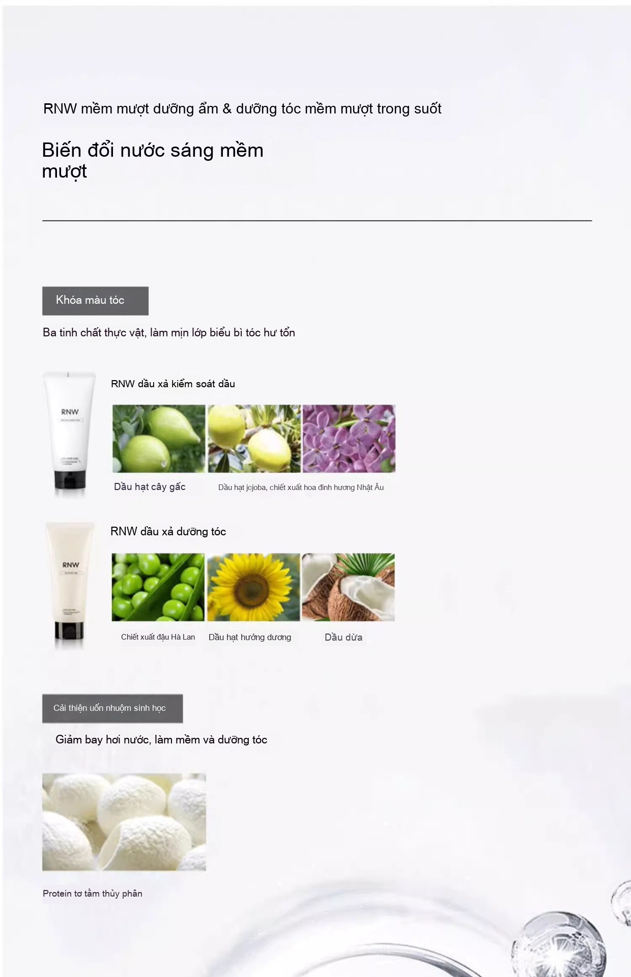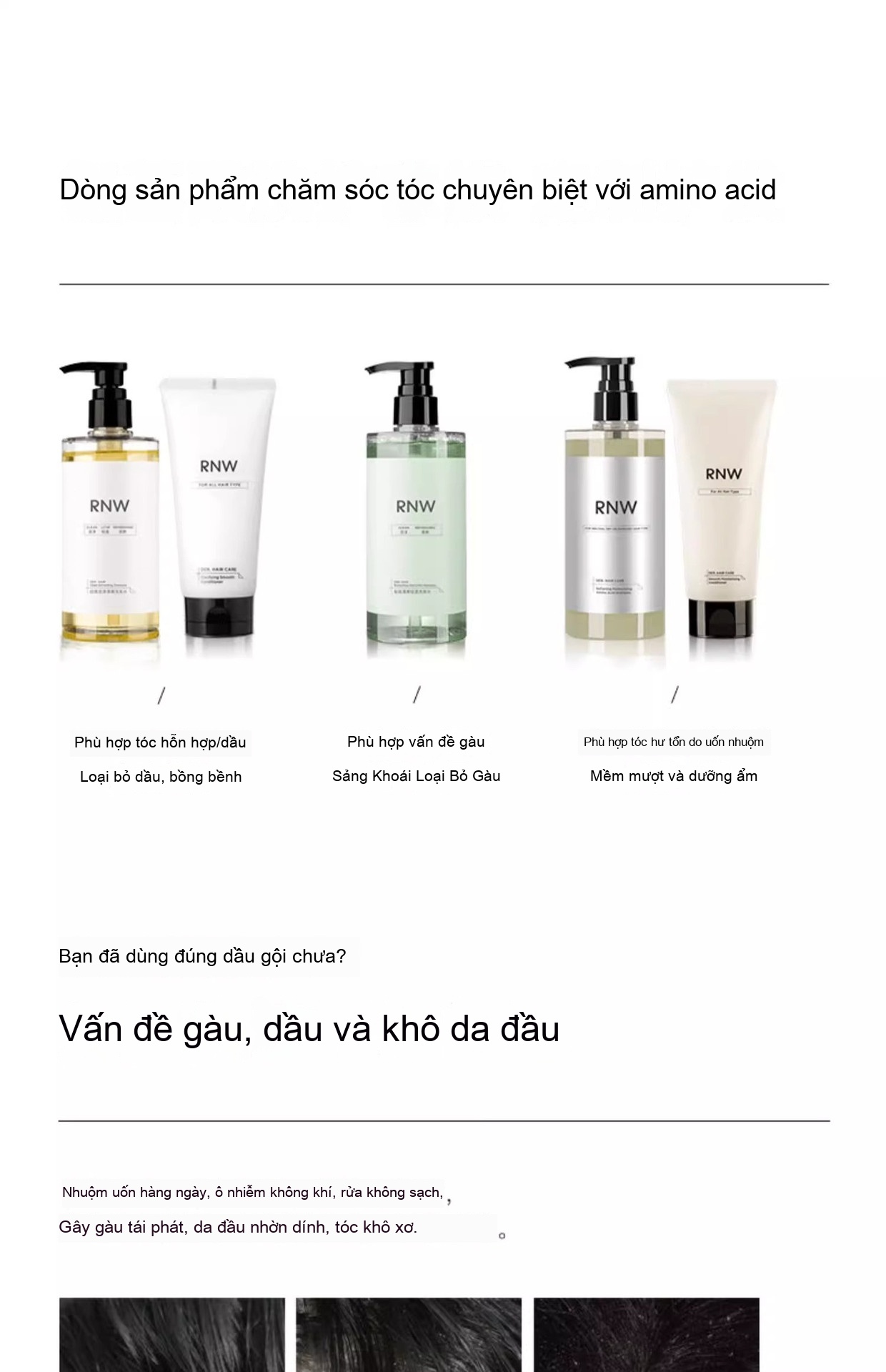 Dầu gội RNW Ruwei làm mới, nhẹ và mịn, dầu xả axit amin để lại hương thơm, dưỡng ẩm, không nhờn và cải thiện độ mềm mại