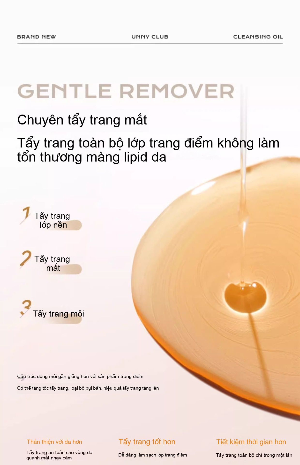 Dầu tẩy trang unny Youyi, trang điểm tan trong dầu, trang điểm đậm, sữa Astaxanthin, mắt, mặt, môi, làm sạch ba trong một, làm mới và làm sạch trang điểm cho phụ nữ