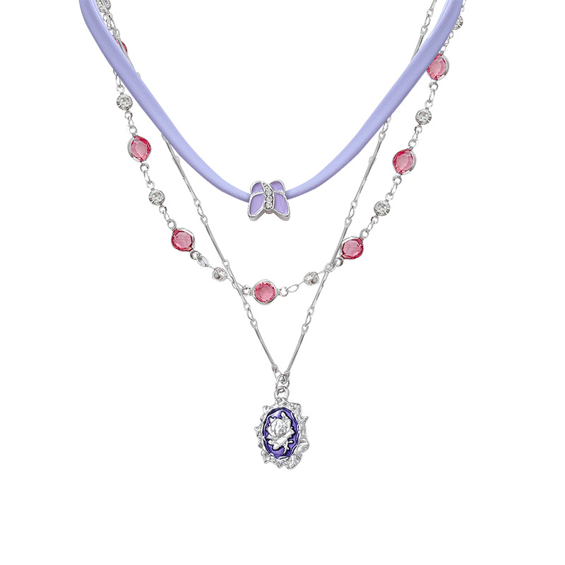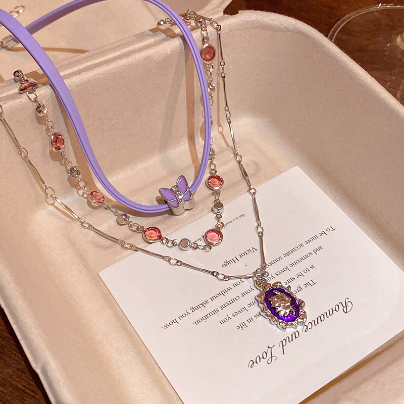 Dây chuyền da Bướm Đeo nhiều lớp Dây chuyền nữ dây chuyền xương đòn màu tím phong cách cao cấp ngọt ngào mát mẻ Phụ kiện dây chuyền vòng cổ chocker