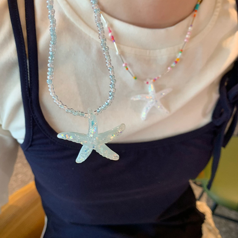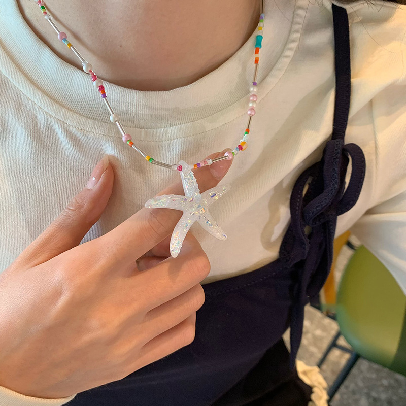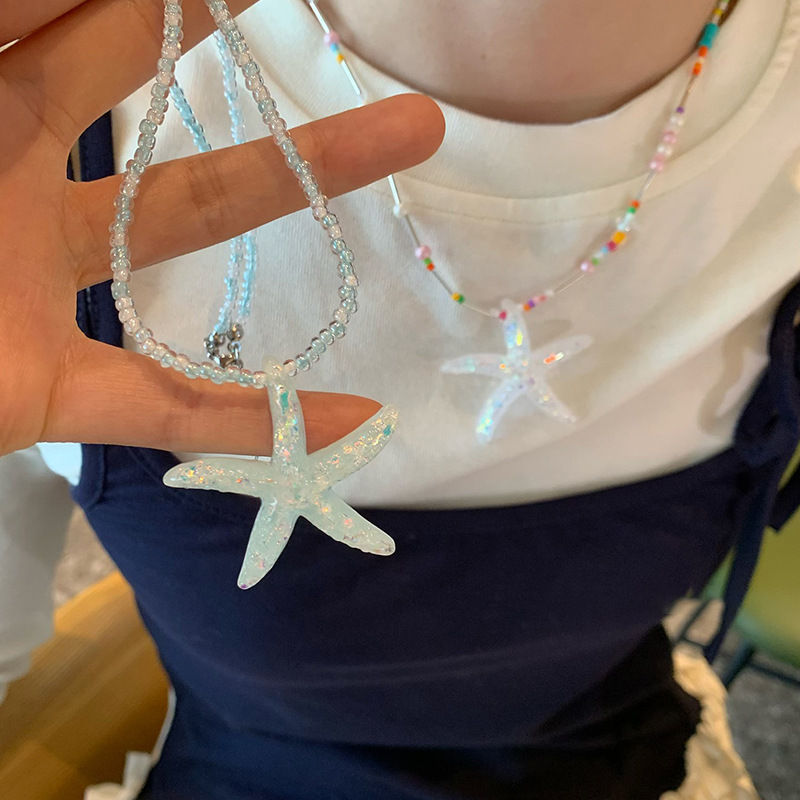 Dây chuyền mặt dây chuyền sao biển acrylic phong cách nghỉ dưỡng bên bờ biển, thời trang, dễ phối, cá tính, tươi mới, chuỗi hạt nhiều màu dành cho xương đòn.