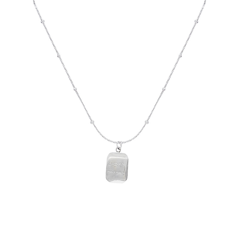 Dây chuyền titan hình khối vuông nhỏ đơn giản họa tiết chữ cái phong cách tomboy cá tính, dây chuyền xương đòn thời trang phong cách Hàn Quốc cho nữ.