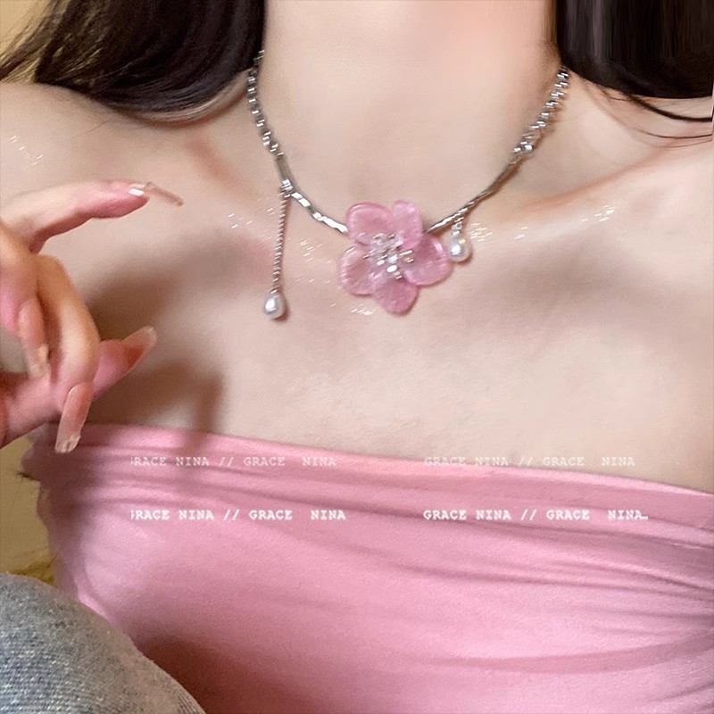 Dây chuyền xương đòn hoa hồng ngọt ngào sang trọng, dây chuyền cùng kiểu hot trên mạng khí chất dễ phối, Dây Chuyền xương đòn Tua Rua Nữ