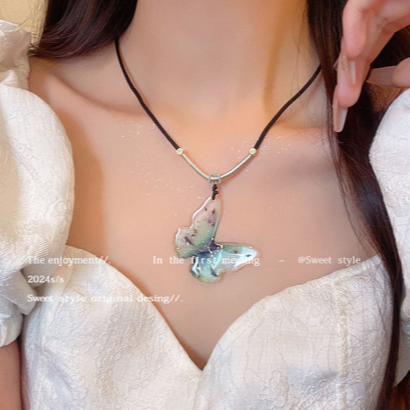 Dây chuyền xương đòn nữ phong cách dân tộc Trung Hoa mới, phối màu nổi bật hình bướm, phong cách trẻ trung, thời thượng, dễ phối, mang lại vẻ sang trọng và tinh tế.