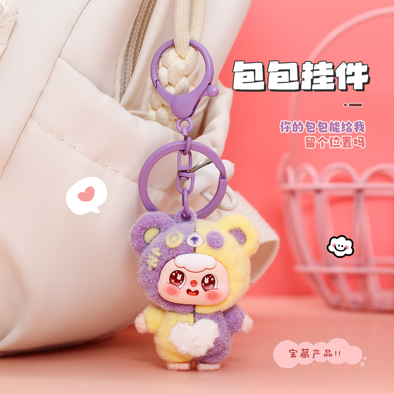 Dễ thương đổ xô màu phù hợp với túi Đậu Móc Khóa Mặt dây chuyền dễ thương Búp bê túi sách học sinh đồ trang trí văn hóa và sáng tạo quà tặng nhỏ bán buôn