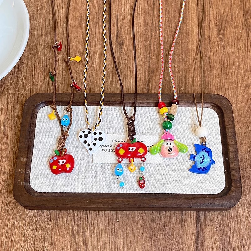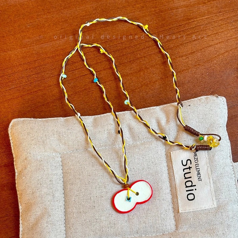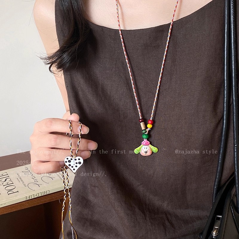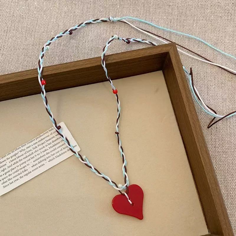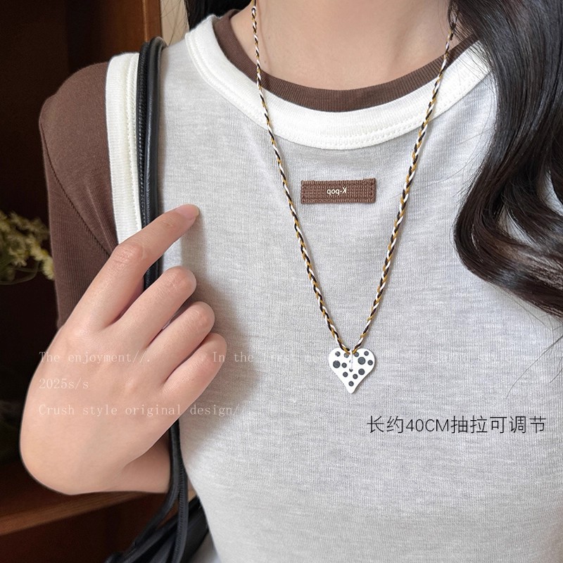 Dopamine Màu Trái Tim bện Vòng cổ phụ nữ 2025 phong cách mới dễ thương dài đeo cổ áo len dây chuyền phụ kiện