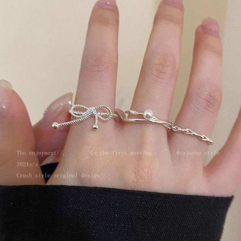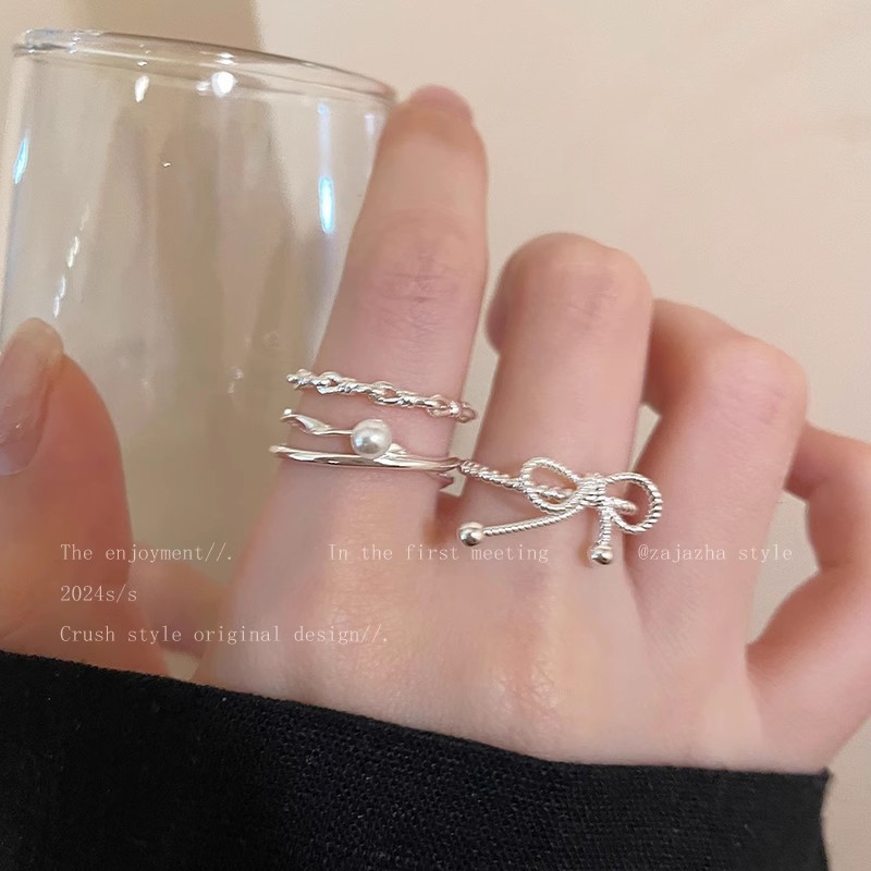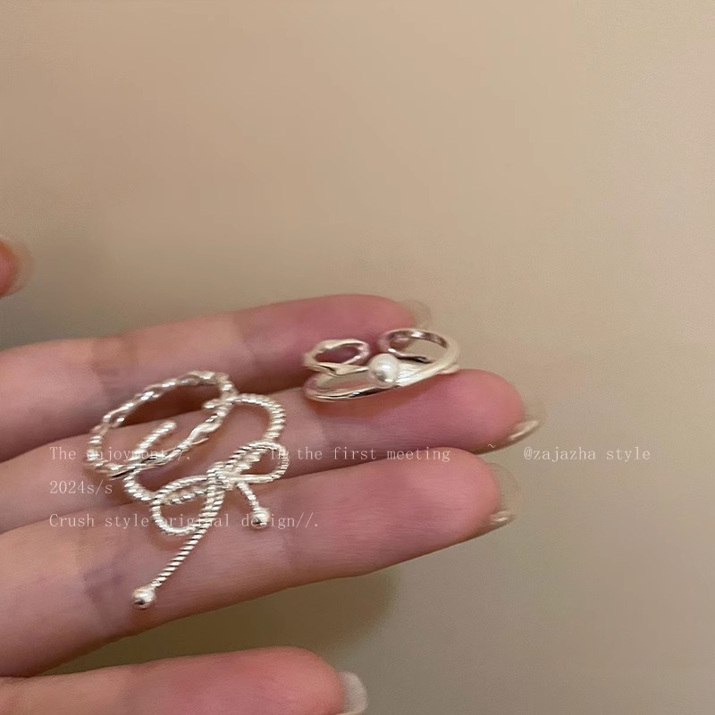 Hàn Quốc Bạc Nơ Ngọc Trai Nhẫn dây đeo nhẹ sang trọng khí chất thích hợp hở ngón Nhẫn ngón tay bán buôn Nhẫn nổi tiếng trên mạng