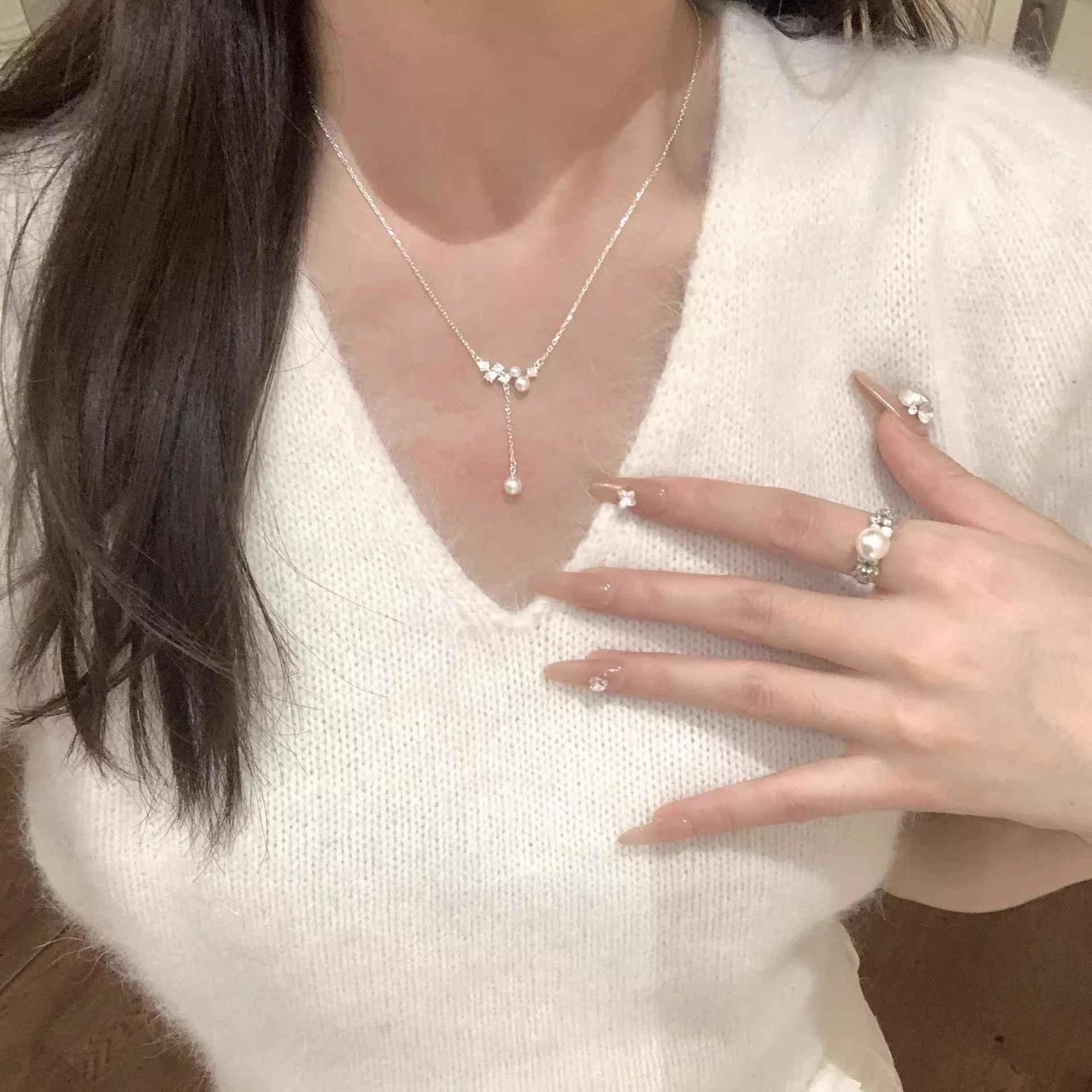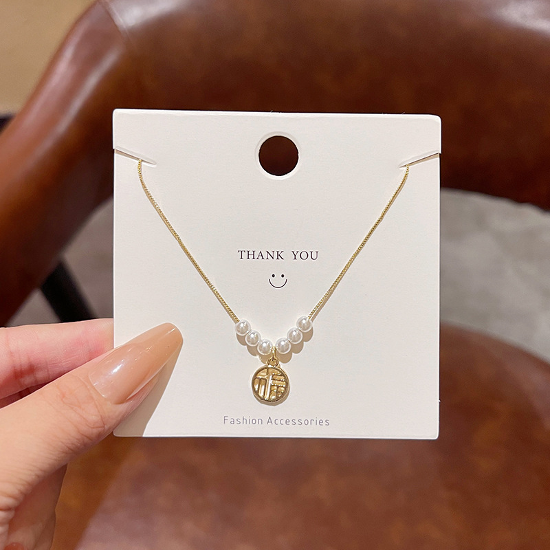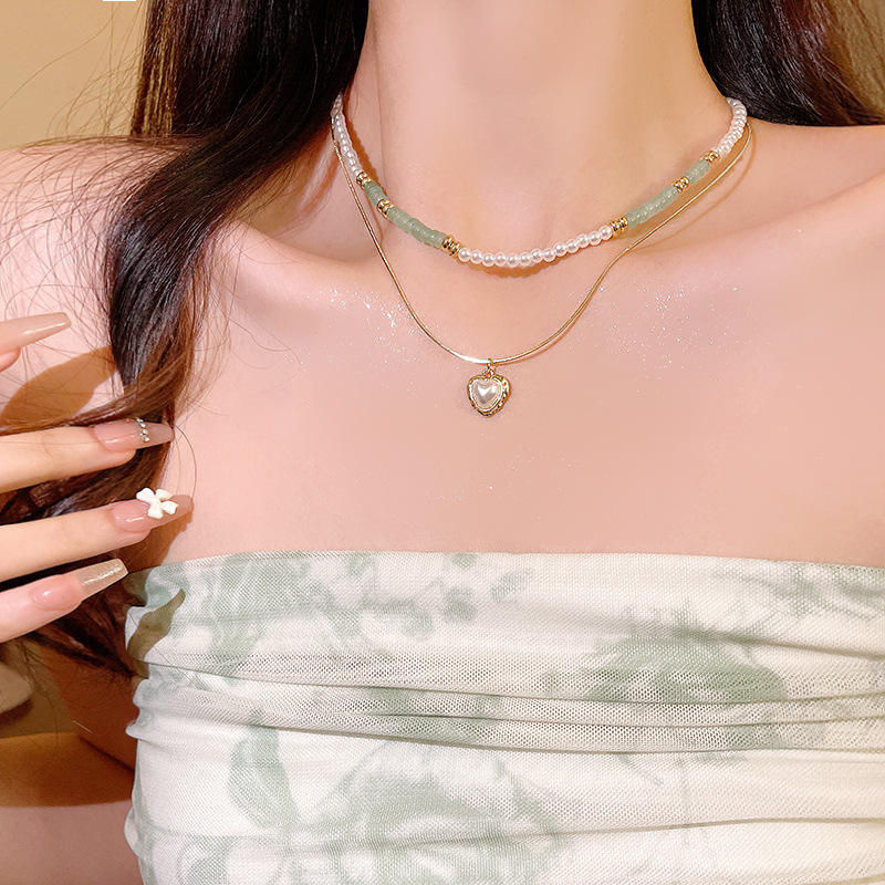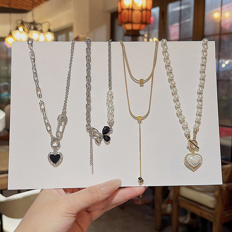Hàn Quốc phong cách mới Vòng cổ ngọc trai nữ tất cả các trận đấu khí chất tình yêu Vòng xương đòn thép titan thiết kế cao cấp cảm giác bán buôn Vòng cổ
